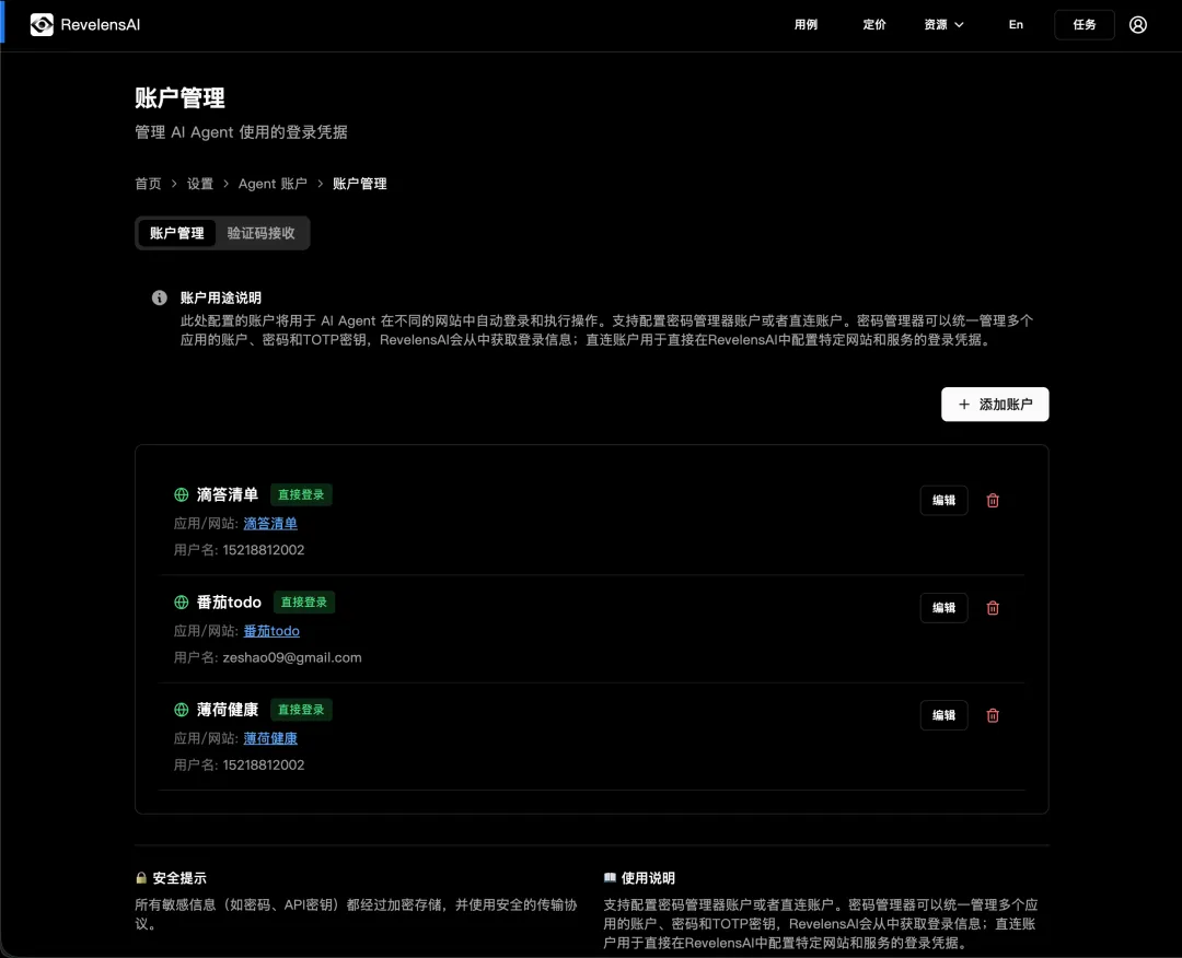 在任务执行前要设置要分析的应用的账户密码,不一定是自己在使用的,可以是用于测试的,没有真实数据的账户。