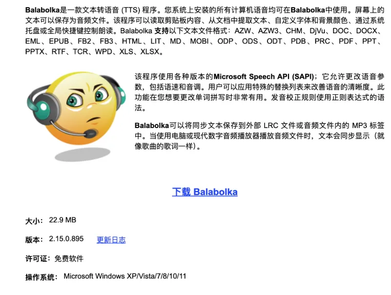 4. Windows 本地 / 免费 / 轻量化 → 选【Balabolka】