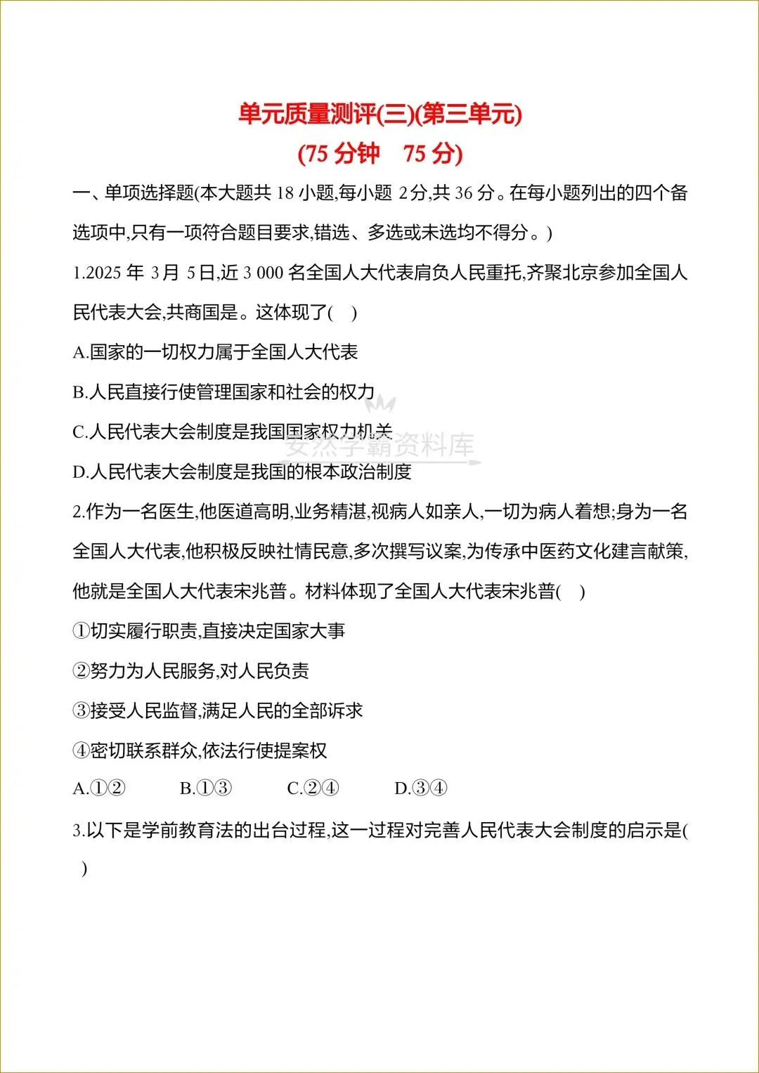 26春新版教材【统编版】八年级下册〈道法〉第三单元《认识国家制度》复习讲义+单元检测卷(附解析),可下载打印!