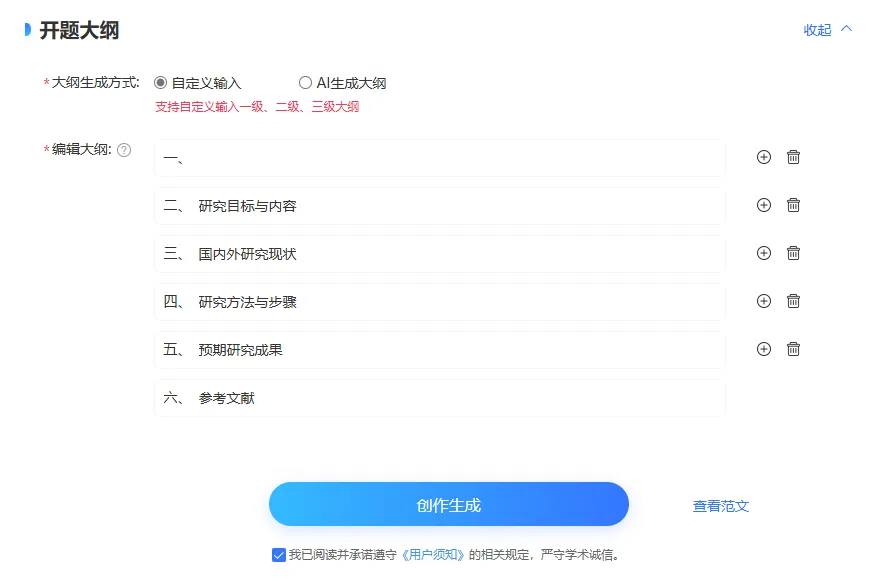 我们可以选择好学历、字数等内容,掌桥科研【AI开题报告】就会按照我们的要求去进行创作。