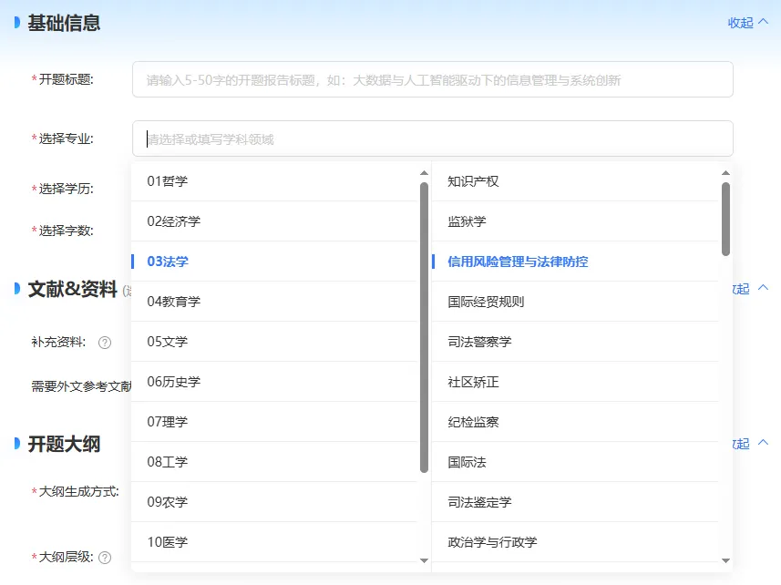 掌桥科研【AI开题报告】提供给我们非常细分的专业选择,后续创作也会根据学科专业特色去进行创作。