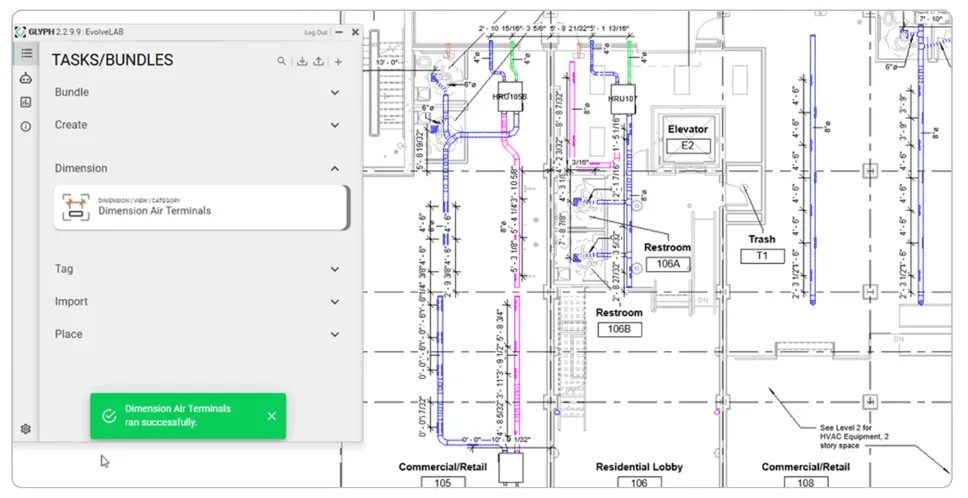 Glyph 是一款面向 Revit 的自动化工具,能够简化文档任务,如通过几次点击创建视图、图纸、标记和尺寸标注。它将重复的 BIM 工作流转变为快速、可复用且一致的过程,帮助团队节省数小时的手动绘图时间。