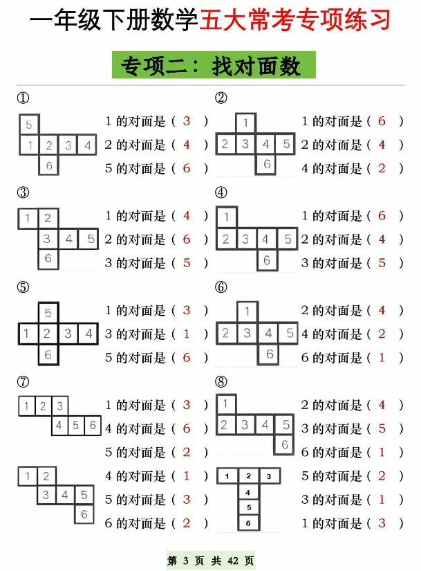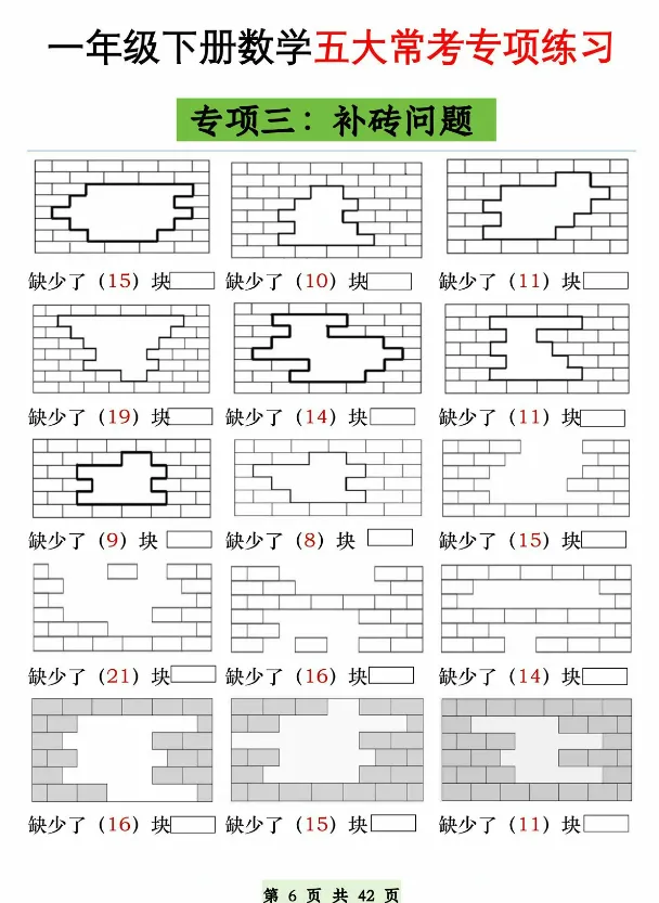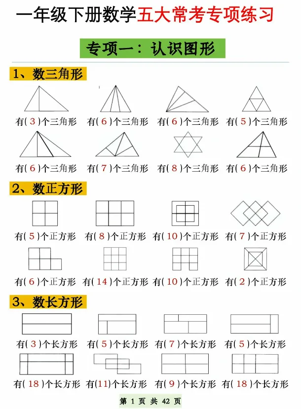 一年级下册数学五大常考专项练习,42页PDF可打印,家长速领!