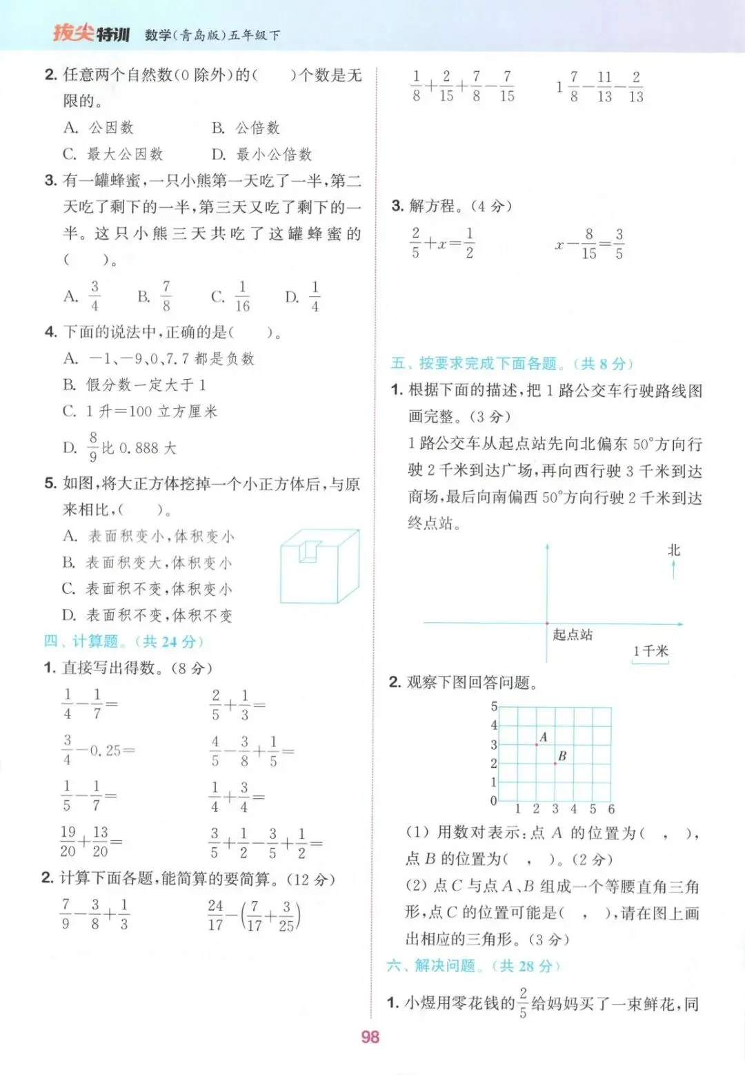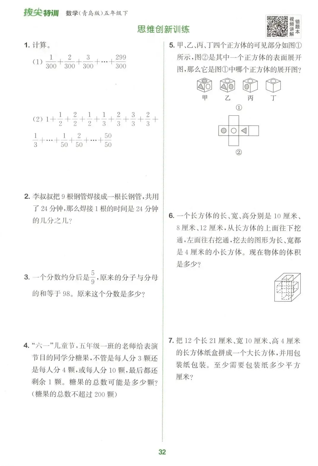 《拔尖特训》青岛63制数学5年级下册丨pdf电子版,可下载打印