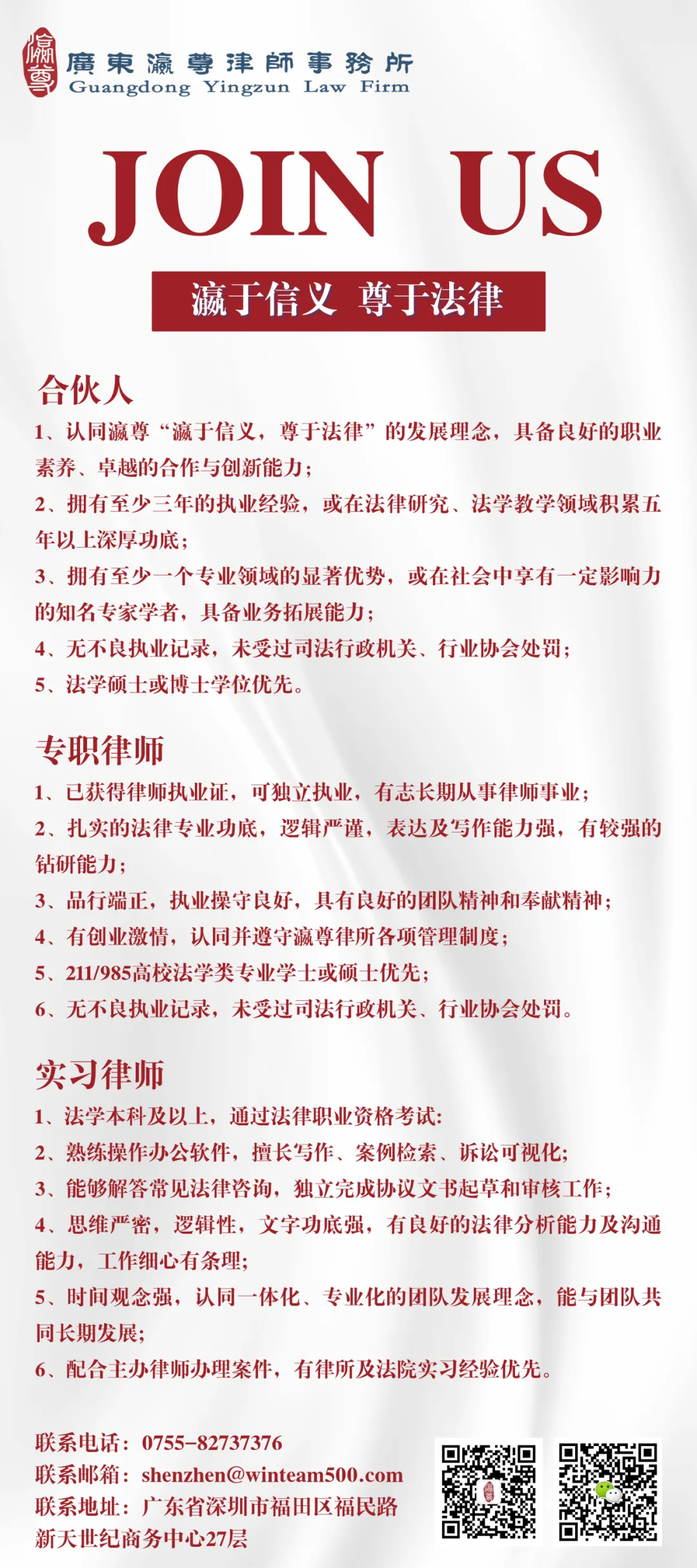 本公众号文章及图片版权归原作者及原出处所有,禁止用于商业用途,如有侵权,请联系删除。本文仅代表作者本人观点,不视为广东瀛尊律师事务所或其律师出具的正式法律意见或建议,作者/广东瀛尊律师事务所明确不承担因基于对本文任何形式的使用(包括作为或不作为)而产生的一切责任、损失或损害。如需转载或引用该等文章的任何内容,请注明出处。未经本所书面同意,不得转载或使用该等文章中包含的任何图片或影像。如您有意就相关议题进一步交流或探讨,欢迎与本所联系。