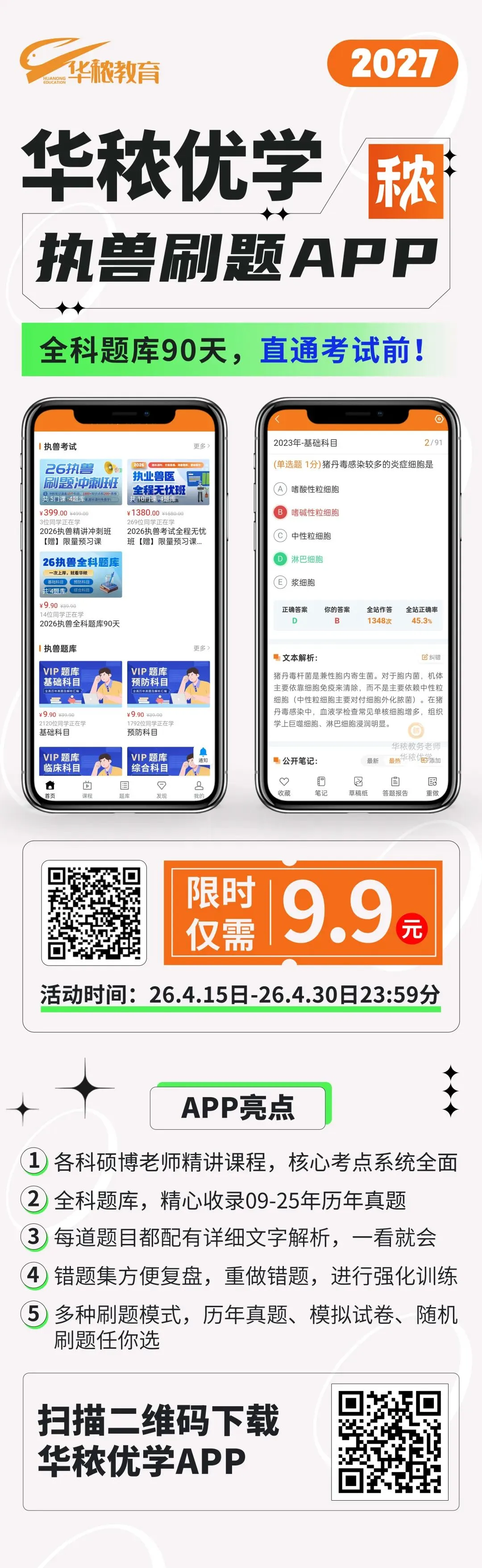 这段时间,华秾团队升级了我们的优题库,打造了【华秾优学】APP,这是一款为执兽考试量身定制的一款备考神器!高效的课程,海量的题库,帮你系统学习,成功上岸!