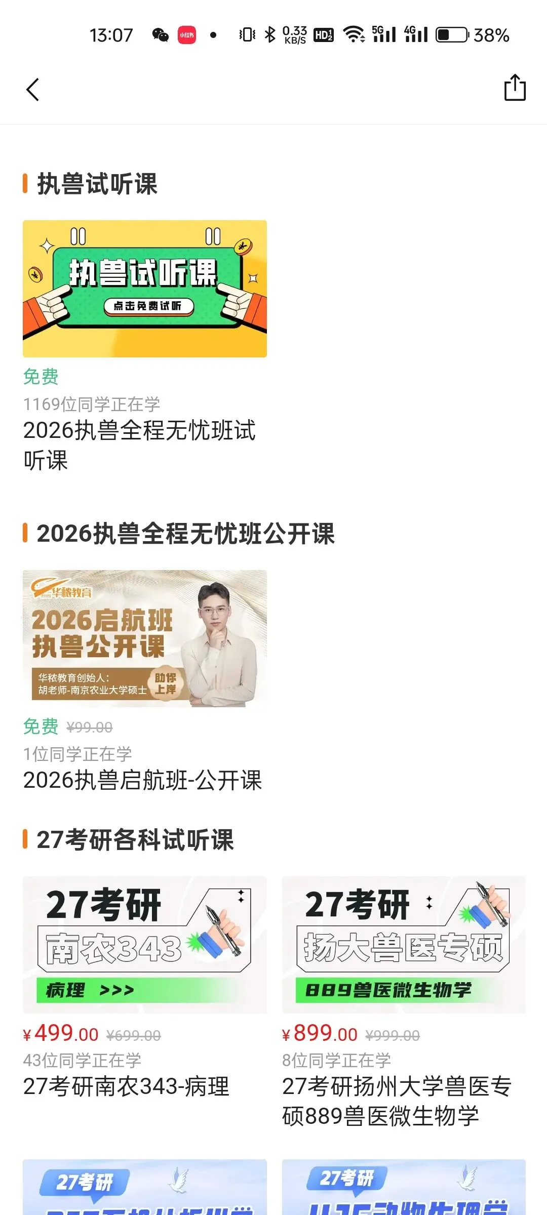 执兽课程由老胡学长联合各大名校兽医专业硕博老师倾力打造,课程精讲、核心考点,提供系统全面的: