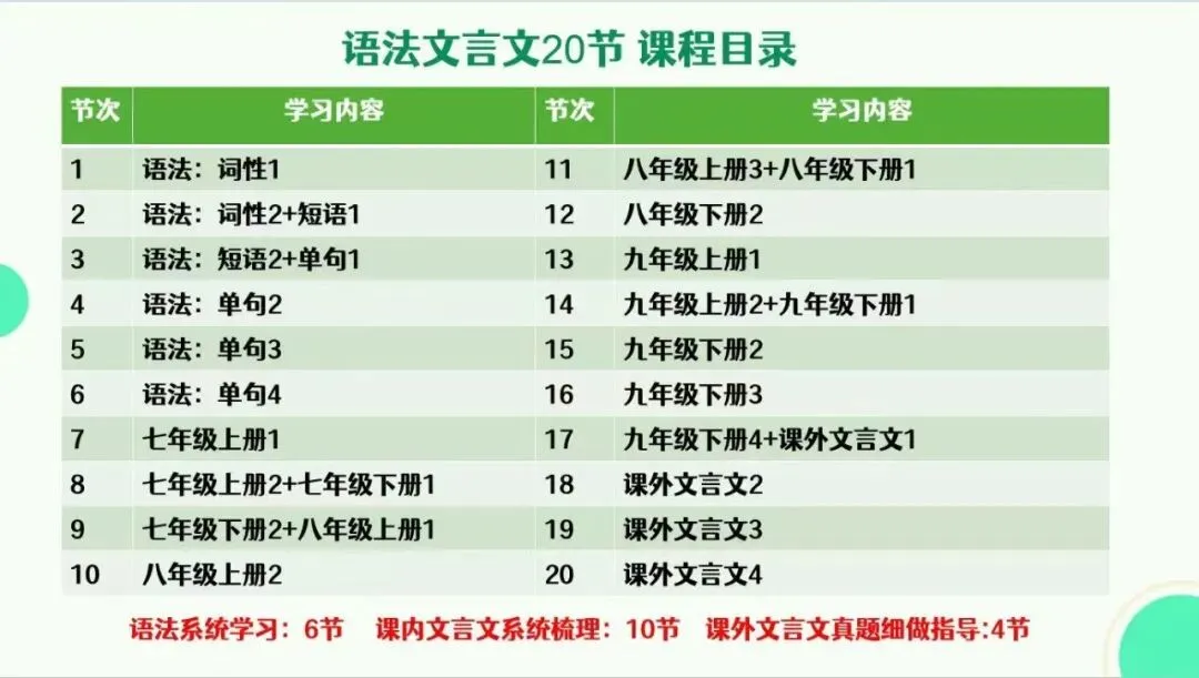 课程包含完整系统的学习资料,包括语法简表、虚词用法、课内虚词实词练习资料。
