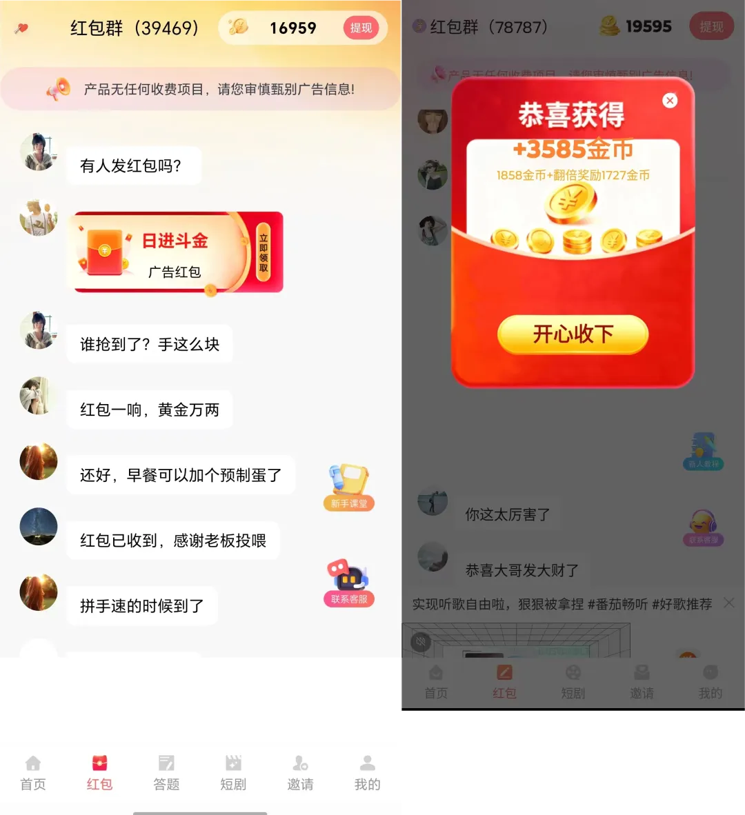 不喜欢答题的朋友们,咱们就去拆红包,金B是随机的,最高6666,这个也会跟手机的权重有关系,权重越高,开出的B越多,也就是收~益越高,开的过程中也要注意一下,不要一直开,要稍微间隔一下。