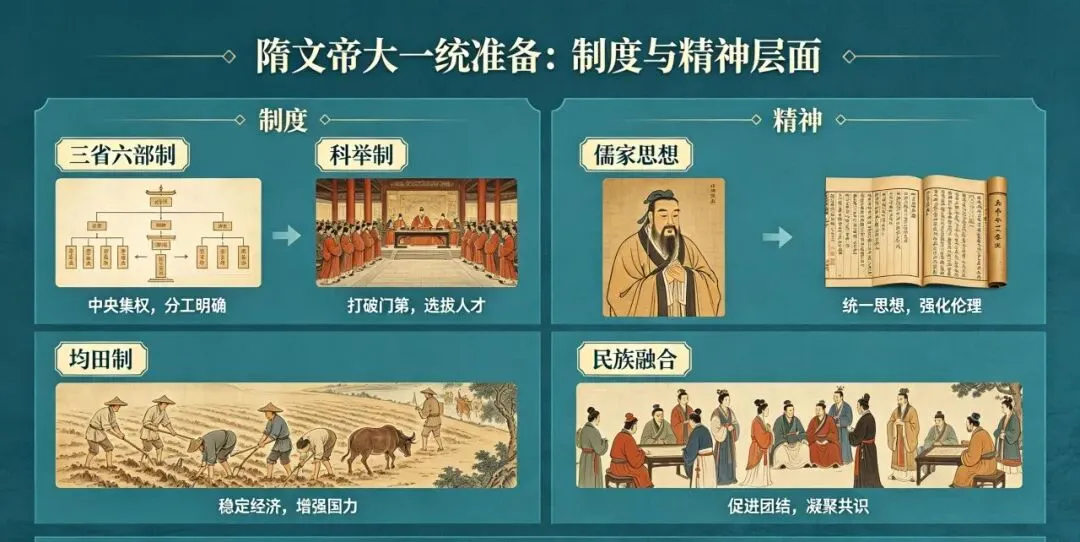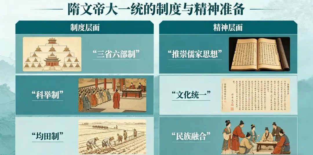 清晰说明隋文帝为大一统,在制度与精神层面的准备: