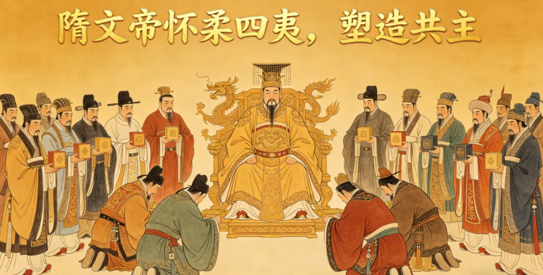 举措:北服突厥、南和陈、西抚吐谷浑,突厥尊楊坚为 “圣人可汗”,强化天下共主形象。