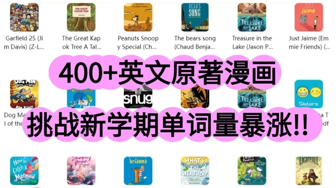 400+高清英文漫画PDF,2小时刷一本,挑战这学期单词量轻松上一个等级!