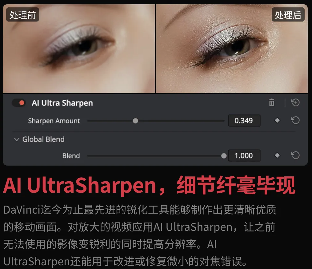 这个应该也是非常实用的,可以把原来不清晰的素材提高质量,例如数码裁剪放大的内容,或者多年前的素材等等