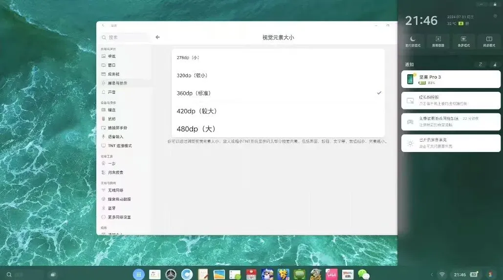 但该说不说,锤子TNT模式很适合当小主机,可以完美适配4K/60Hz的显示器,用在电脑屏幕或大电视机上都不错。