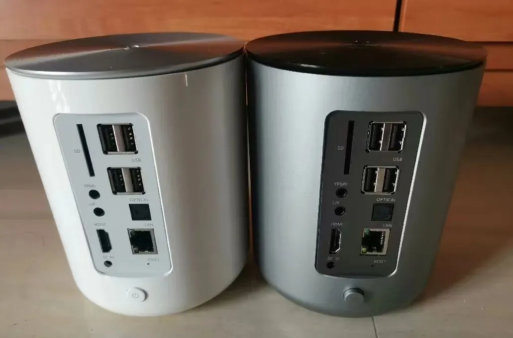 相比大多数安卓小主机都是扁平造型与黑色外观,“云罐”采用圆柱体造型和白色烤漆材质,甚至有一种苹果Mac Pro的既视感。这玩意是2014年出的,你很难相信当年有这工业设计水准,可惜云罐是Cloud Can产品,主打云服务功能,现在早就停止维护变成废物了。