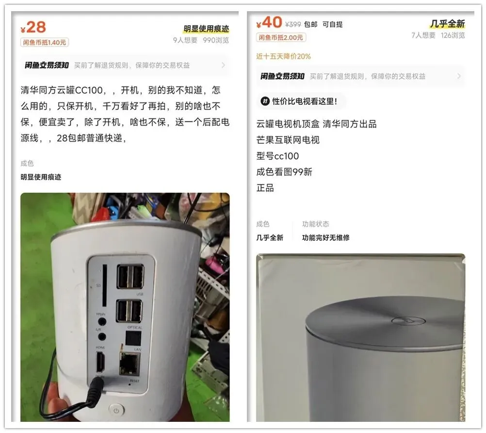 今天写一个美丽的小废物,它在我闲鱼收藏夹躺了几个月了,叫做“云罐”小主机。我一直犹豫要不要写,它颜值很高、价格很低、接口很多,是清华同方早期出的一款安卓电视小主机。但就是没有人破解刷入普通安卓系统,可玩性大打折扣,我苦等几个月也没大神出手。