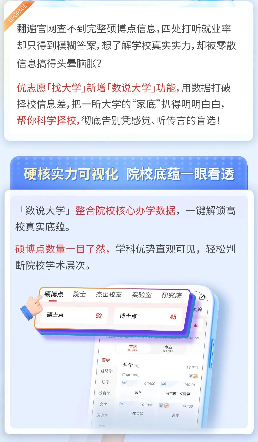 优志愿APP「数说大学」功能即将上线,用数据看懂大学硬核实力