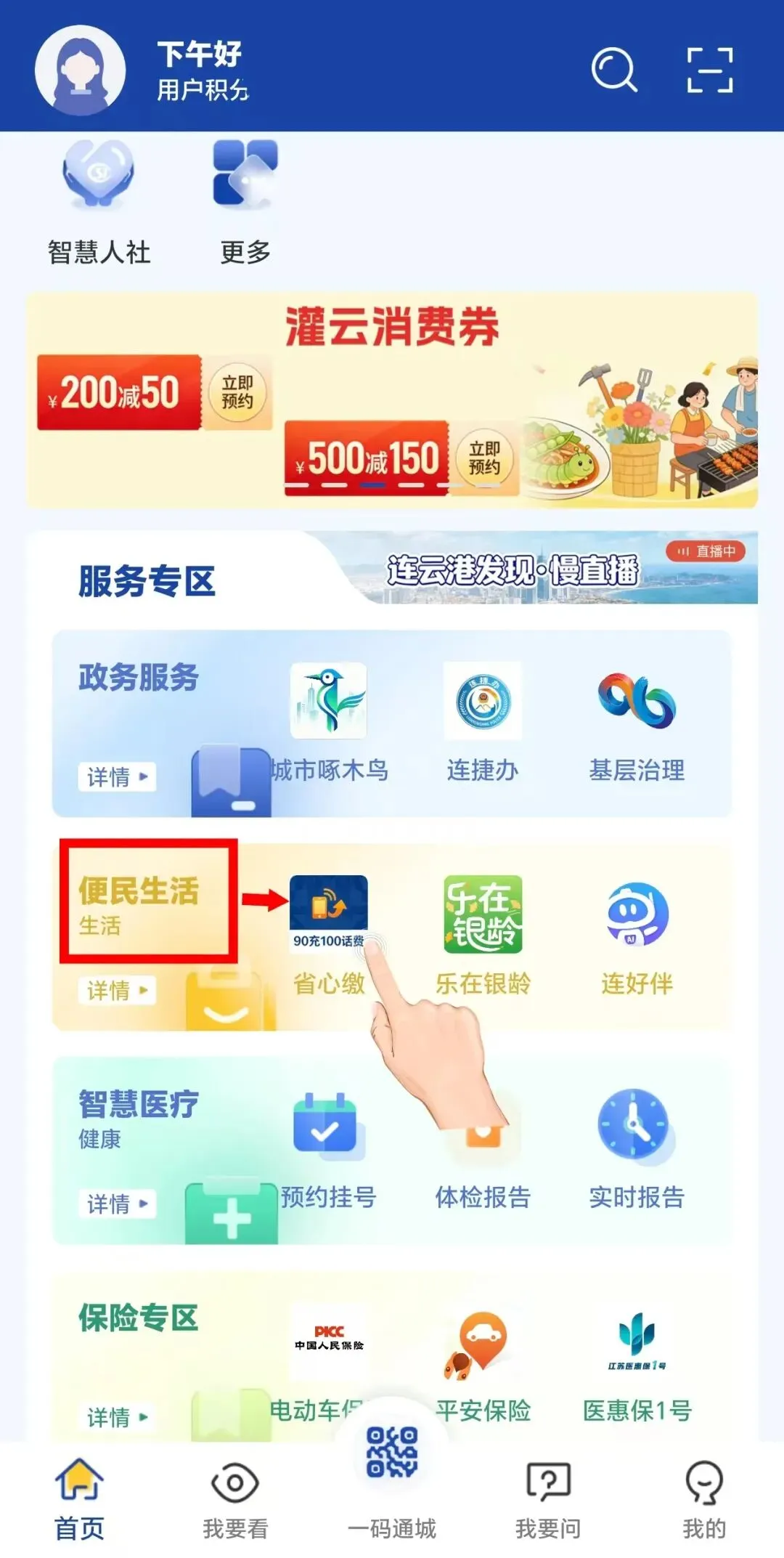 2️⃣ 点击APP首页 【便民生活】 专区 → 找到 “省心缴” 图标 → 戳它!