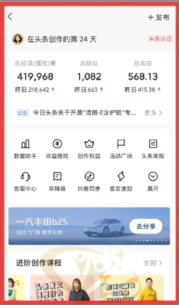 今日头条作为流量庞大的资讯平台,为鼓励用户创作推出了收益激励计划。简单来说,你在平台发布文章,内容阅读量越高,平台给到的收益分成就越多。