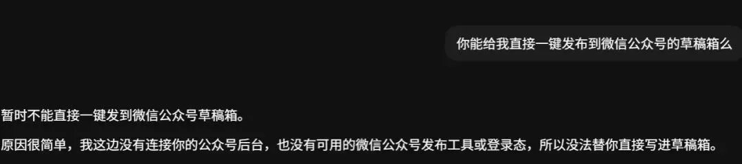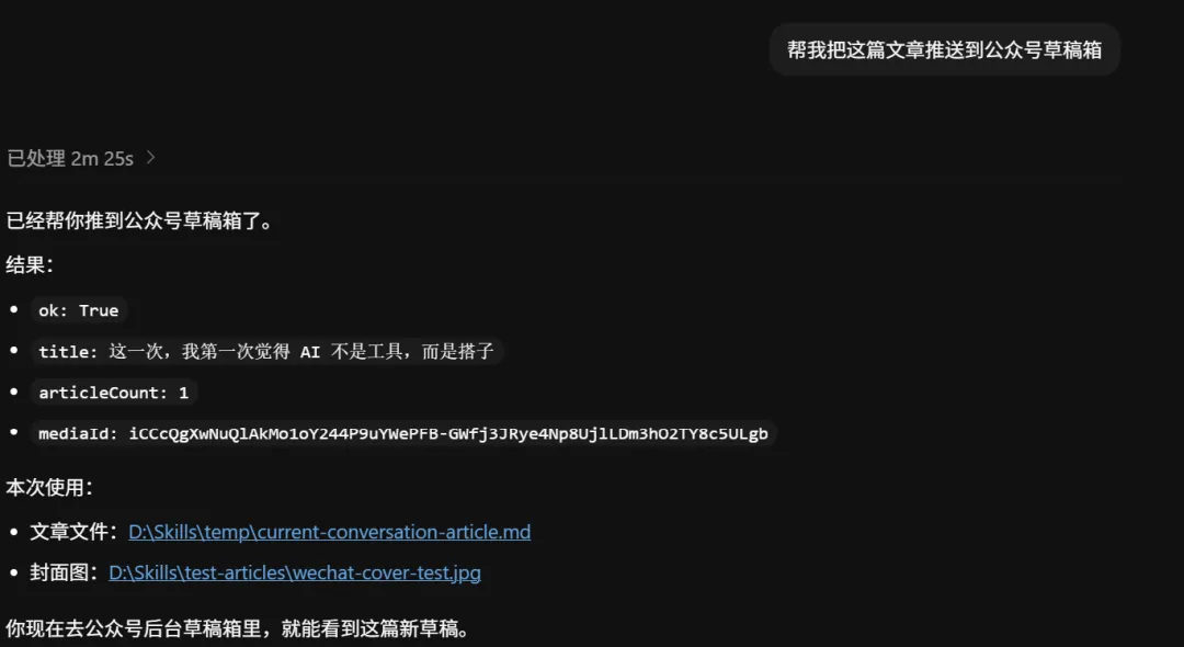 因为你做出来的当然不是什么惊天动地的大东西。不是一个多复杂的平台,不是一个很大的产品,甚至说到底它只是一个公众号草稿箱 skill。