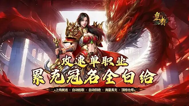 《皇者(攻速单职业送充版)》上线免费赠送自动回收,自送拾取,顶格背包仓库,攻速拉满buff!无限刀专属服,千件无级别专属,版本深度十个大陆!本服冠名累充赠礼可全部白嫖!所有货币道具均可白拿,脸白爆一切!快来邀请你的好友一起探索吧!