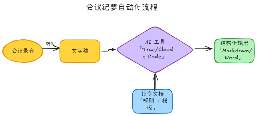 这其实是个很典型的需求:不是要一个通用的”会议纪要”,而是要把会议内容结构化地提取出来,填到标准模板里。
