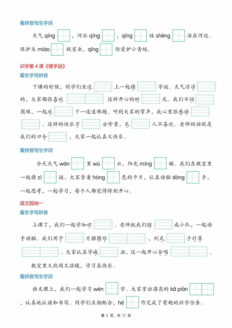 大家好,我是妞妞,专注于1-9年级教育资源分享,今天给大家分享的是:1下《看拼音写词语》,PDF电子版可下载打印。文章末尾可直接领取,✅ 建议收藏+下载,随时给孩子用。💡 如果觉得这份资料对孩子有帮助,欢迎分享到班级群/年级群,让更多家长和孩子受益!🔖 支持正版,让我们一起为孩子提供更优质的学习资源。📚手把手教你打印,又快又好又方便又省钱。