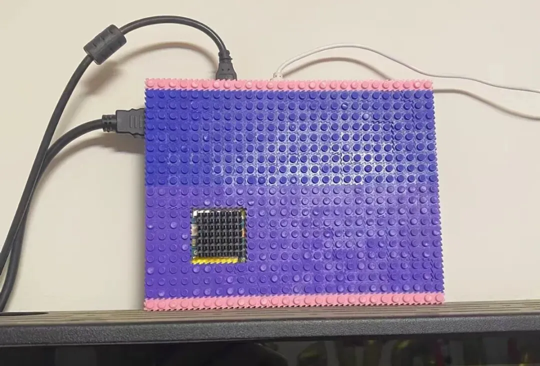 正面就留了个乐高的地基,可以拿积木堆在上面,实现个性化DIY。它的顶部还开了一个正方形槽,露出了铝片散热,内部还有鼓风机散热。根据改装者自述,GPU降压超频到855mHz,温度墙由95度改成110度,系统换YWX1.4.3调度,整体性能更狂暴,非常适合玩yuzu模拟器。