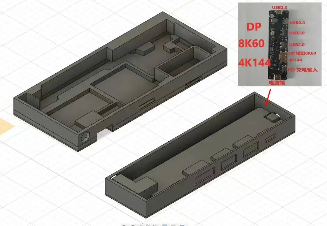改造者还把3D图纸公开了,其实结构很简单,左侧大空间是装Fold3主板的,右侧小空间是装一个扩展坞,能在网上买到,大概44元。借助该扩展坞可以直接DP接口,实现4K/60Hz画质输出。