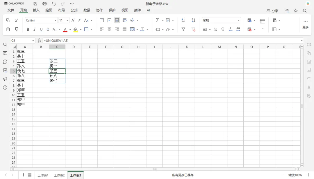 兼容性 — 这些函数仅支持 Excel 365、Excel 2021 或 ONLYOFFICE 文档;旧版 Excel 无法支持这些功能。
