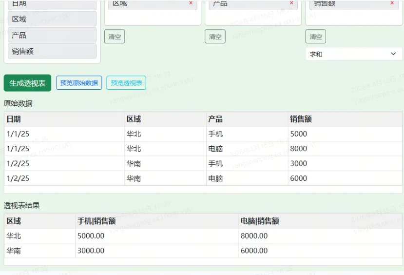 可以使用 localStorage 保存用户的字段配置(行、列、值的选择和顺序),下次打开同结构的文件时自动恢复配置,减少重复操作。