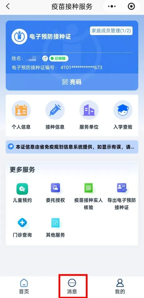漏打疫苗了?接种完成了?留观结束了?门诊发了新通知?都会实时推送到手机,请留意“消息”界面。