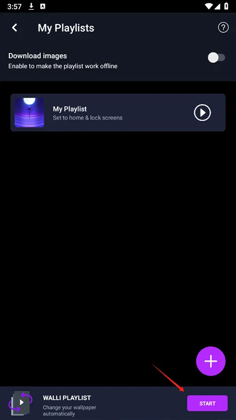 3、点击空白加号添加你喜欢的壁纸,添加完成后点击play
