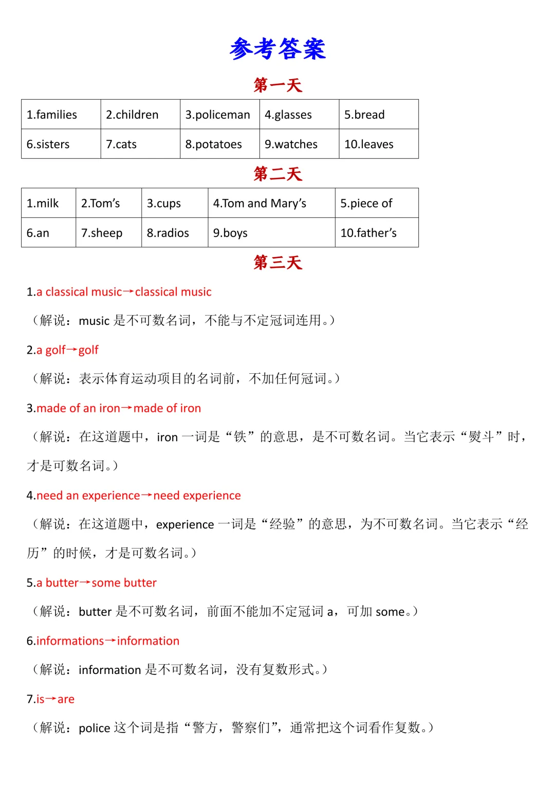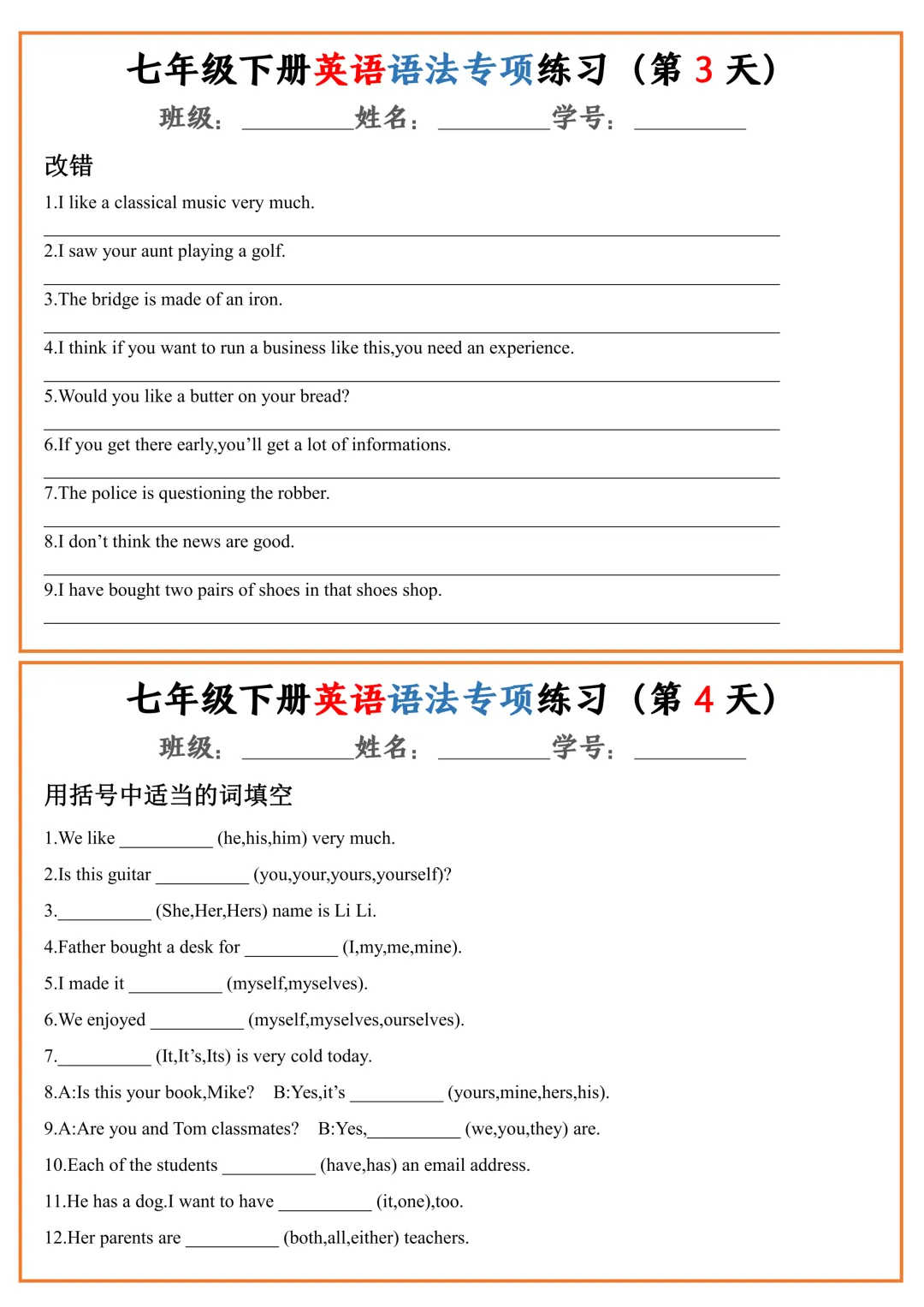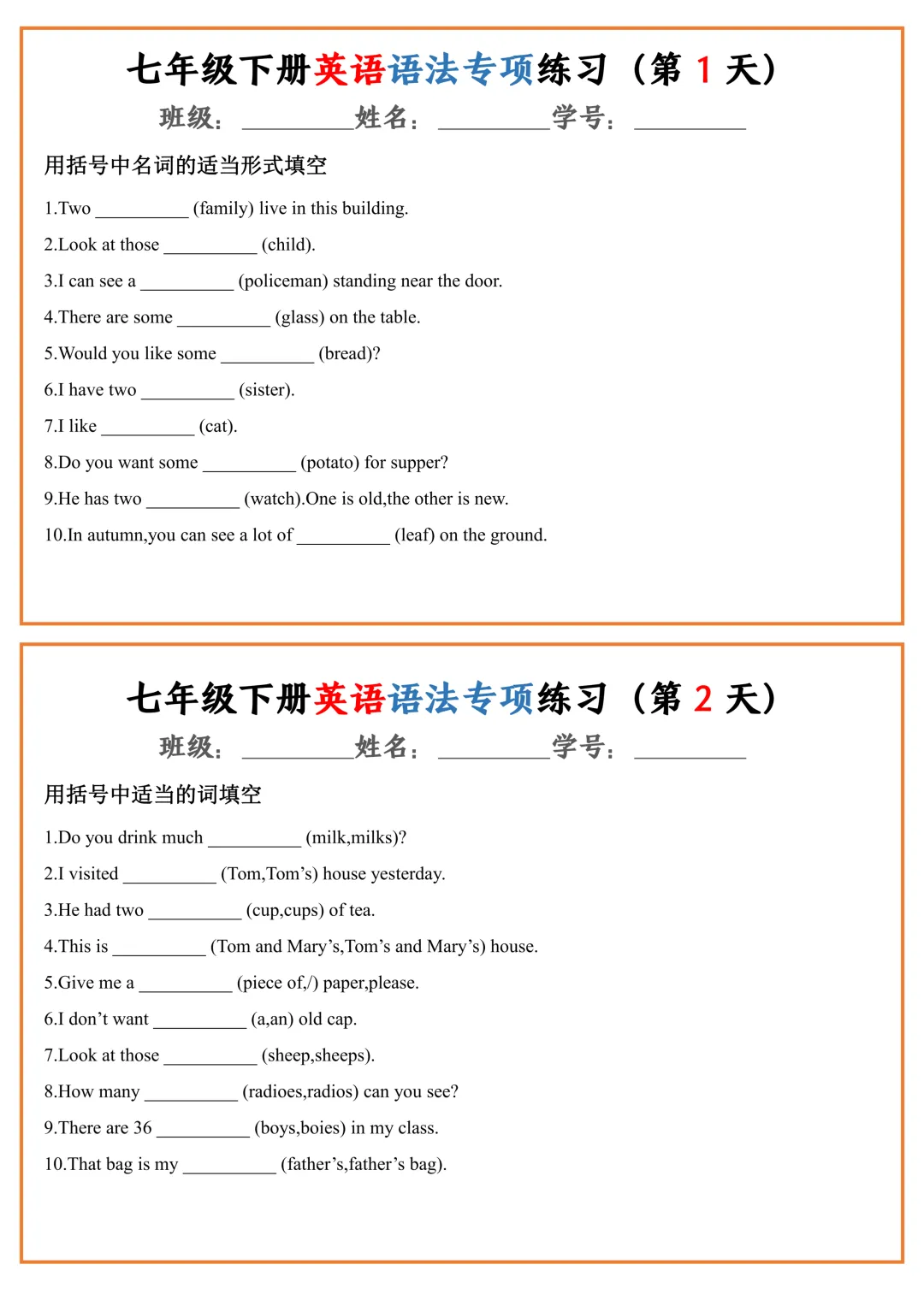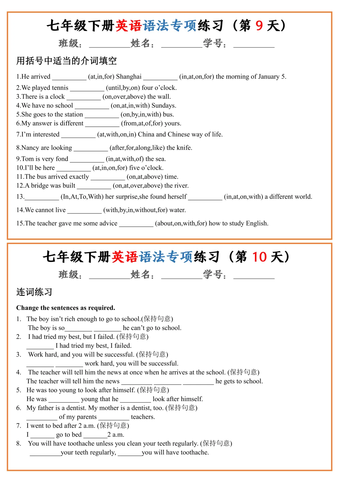 七年级下册英语语法专项练习(pdf电子版含答案,可下载打印)