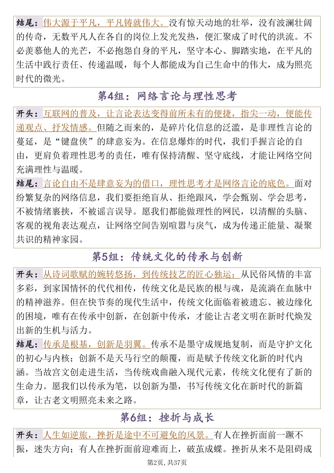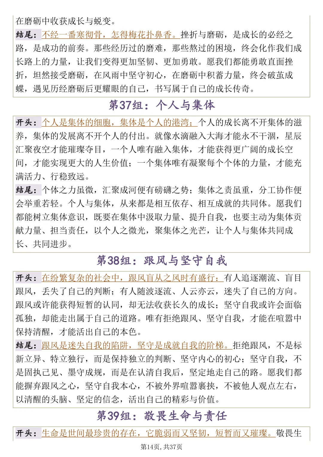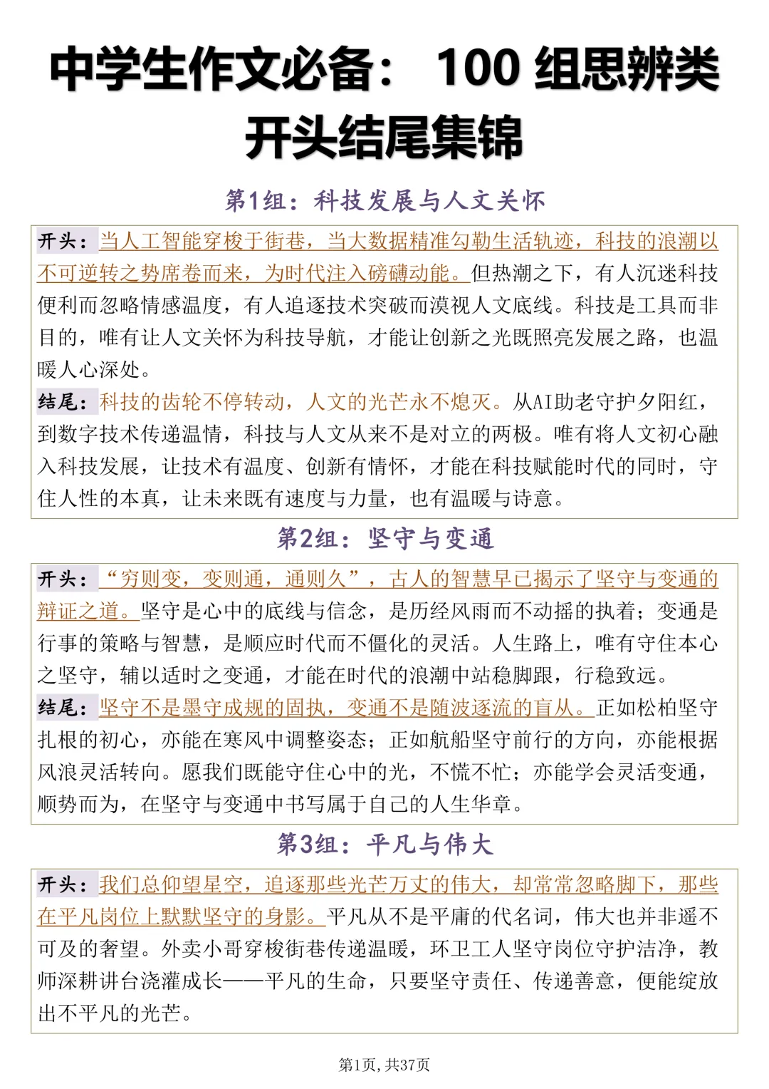 可打印,思辨类作文要想写好,多看看这 100 组开头结尾集锦
