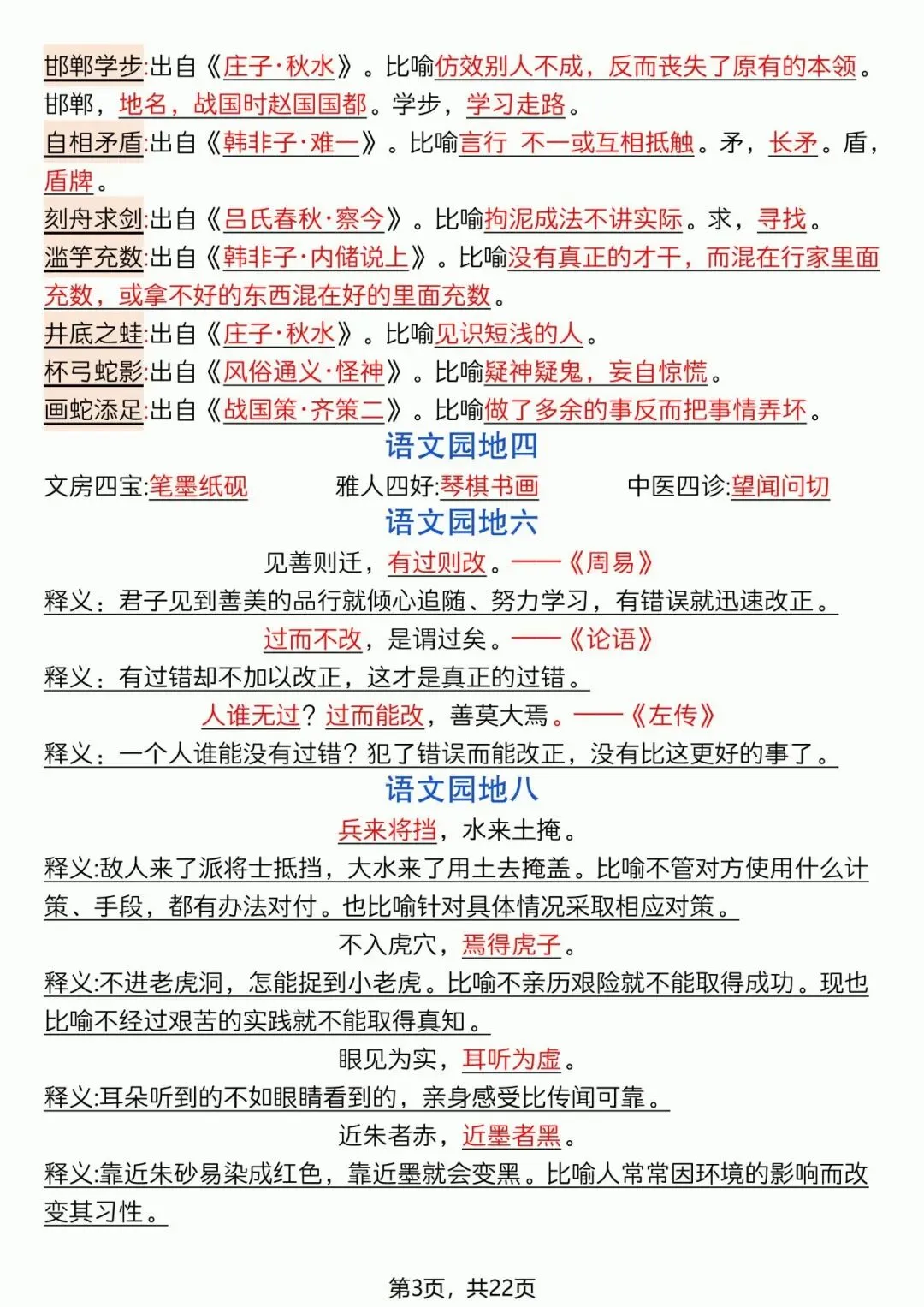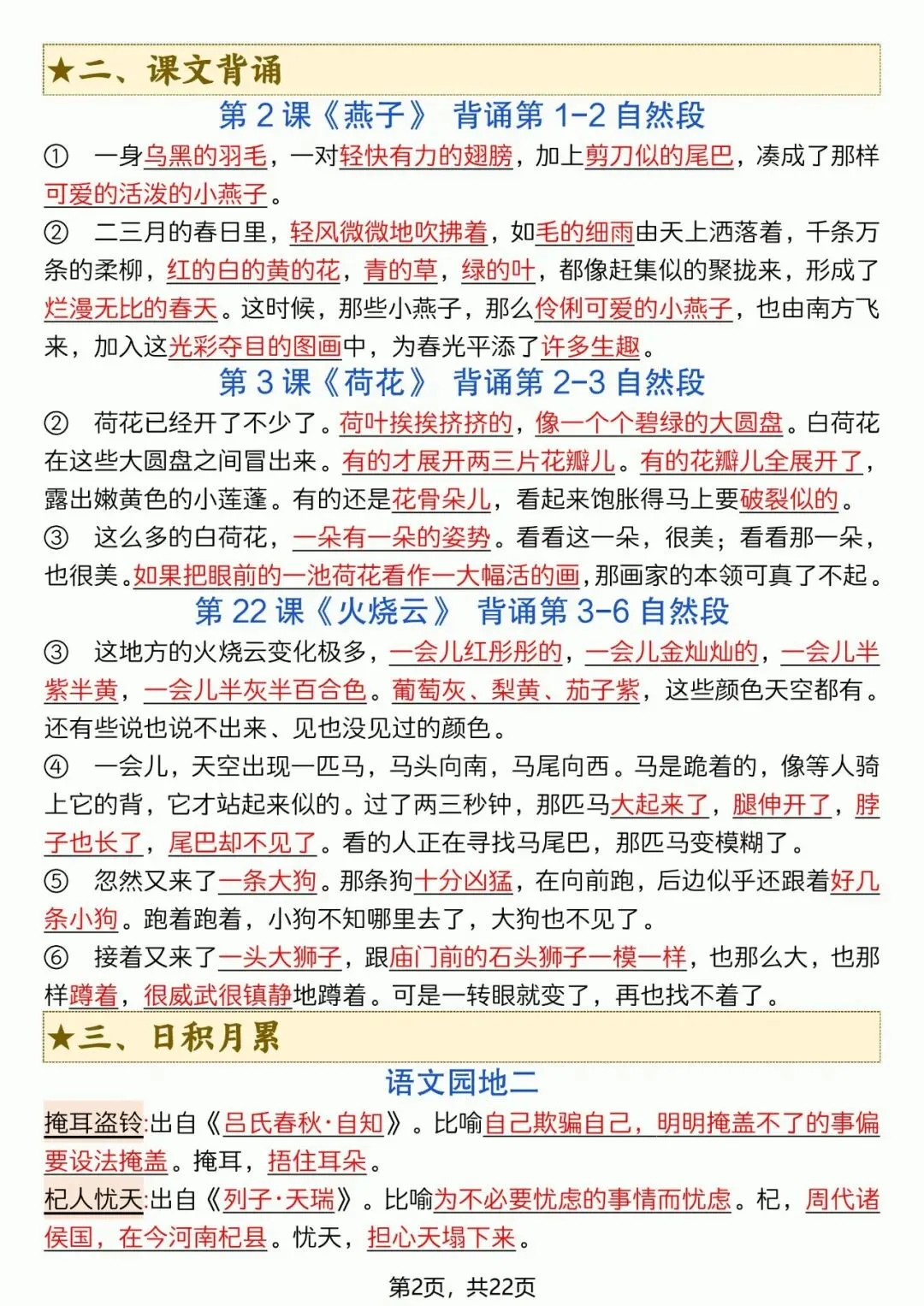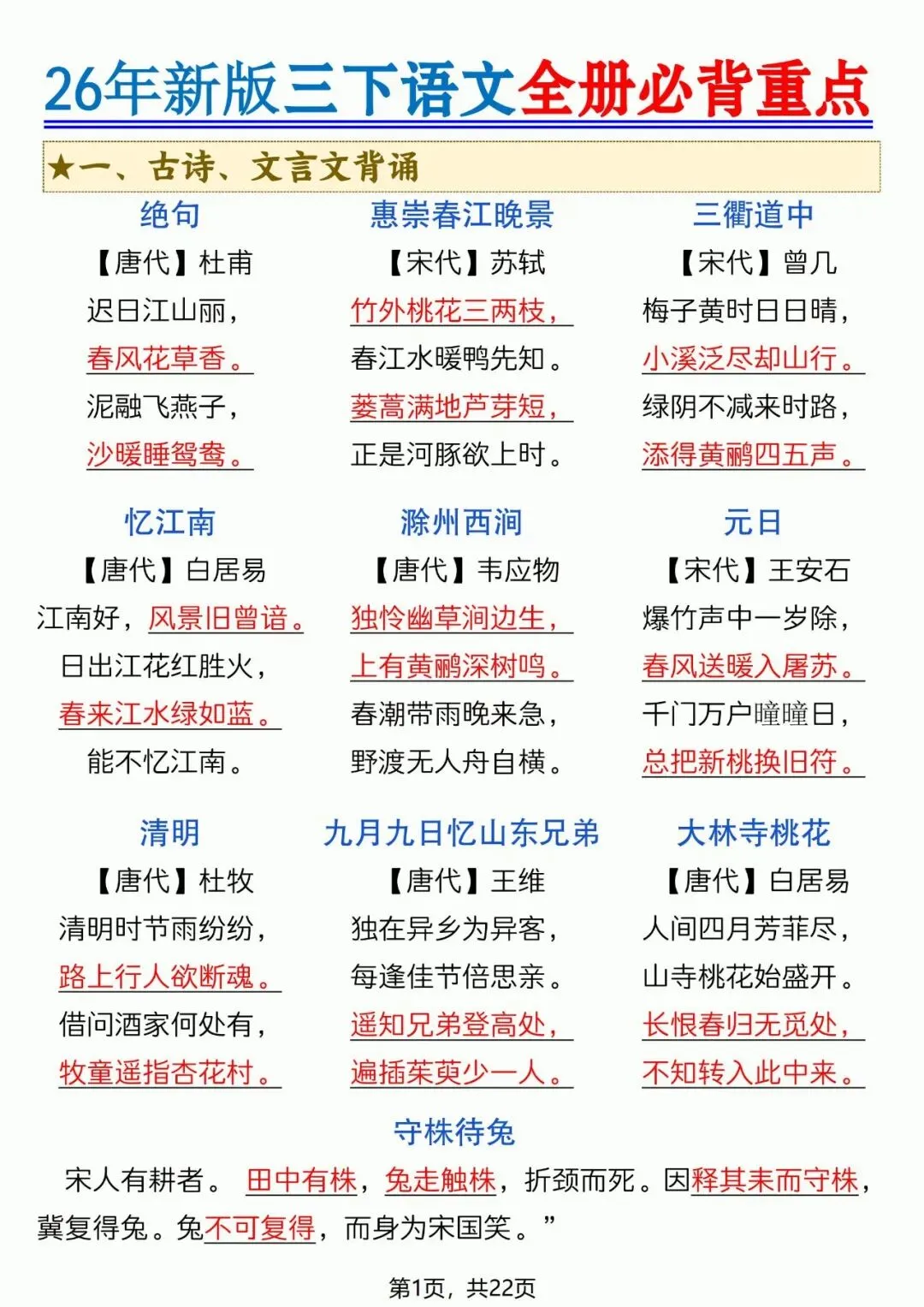 26年春年三年级语文下册必背重点