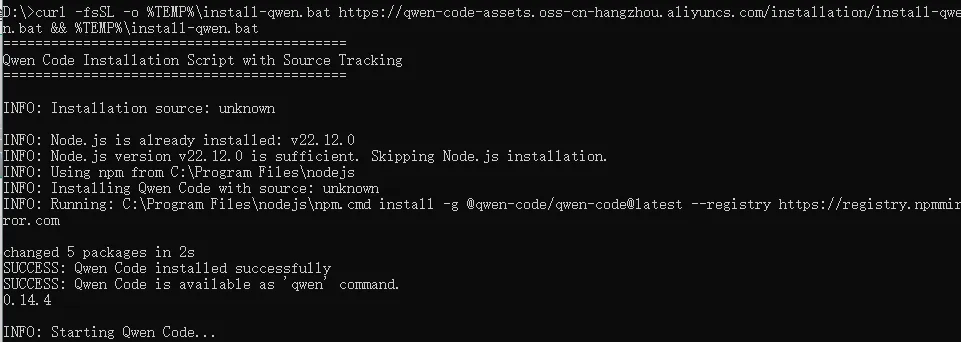 curl -fsSL -o %TEMP%\install-qwen.bat https://qwen-code-assets.oss-cn-hangzhou.aliyuncs.com/installation/install-qwen.bat && %TEMP%\install-qwen.bat