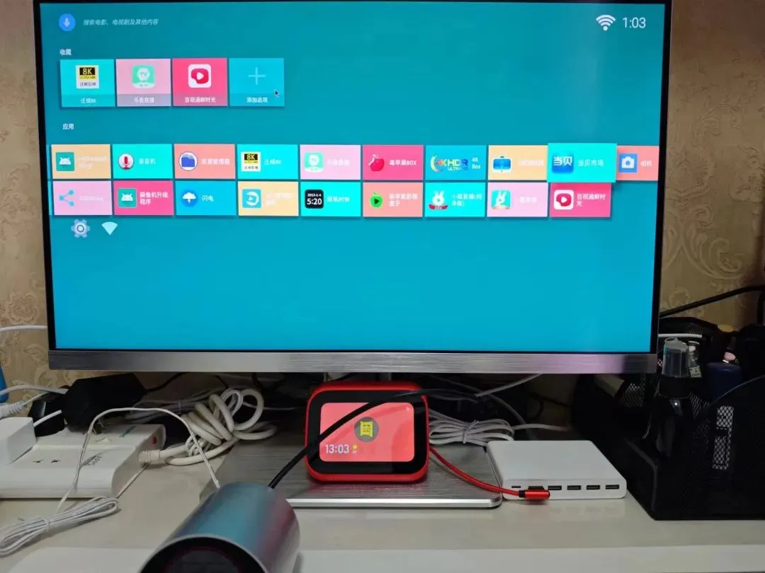 开机看看,它是安卓8.1开放式系统,原生UI非常简洁,可以自由下载直播软件,买来的时候已经装好了各类直播软件,我是用当贝桌面替代原装UI。