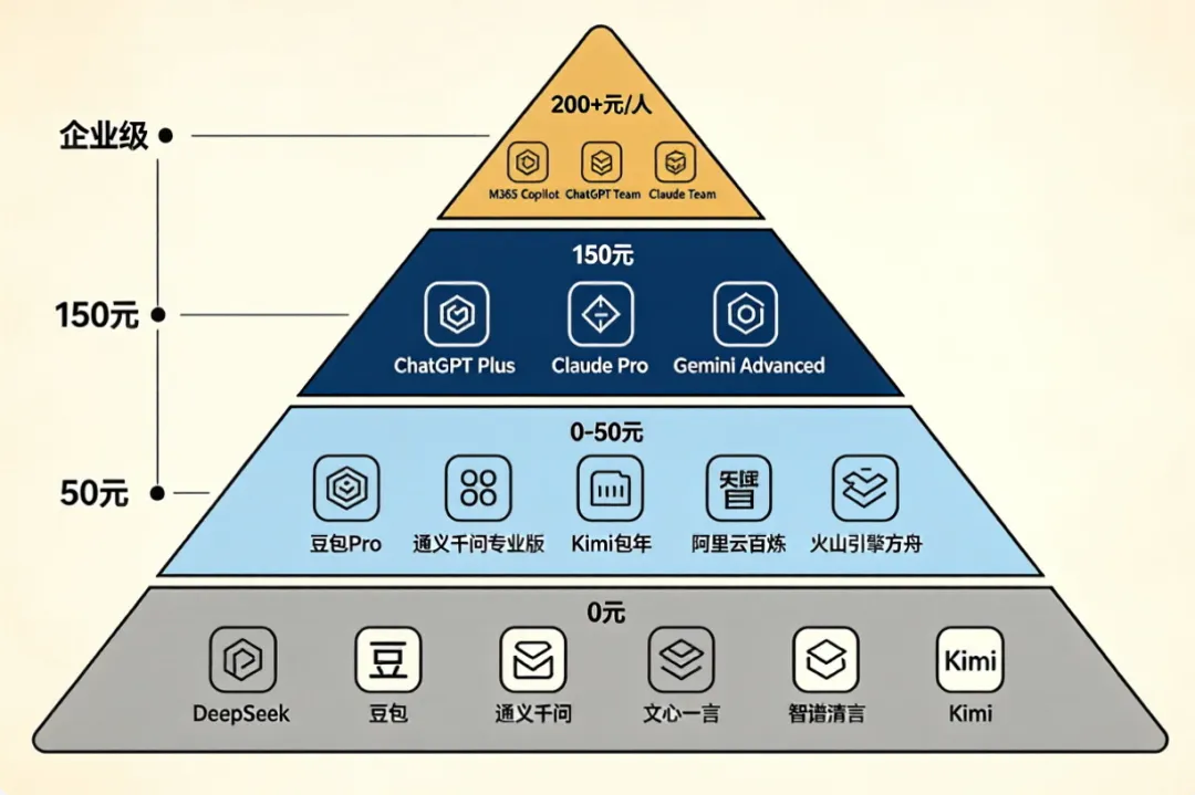 企业部署:按座位数算,每人每月200-300元。私有化部署则数万至数十万起步,主要针对数据隐私要求极高的大型机构。这是另一个维度,不在个人选型范围内,了解即可。