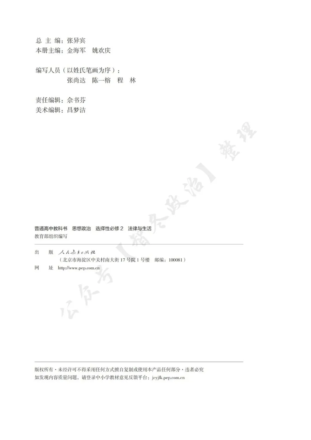 智教材|2026版高中思想政治【选择性必修2 法律与生活】电子版值得收藏!可打印!