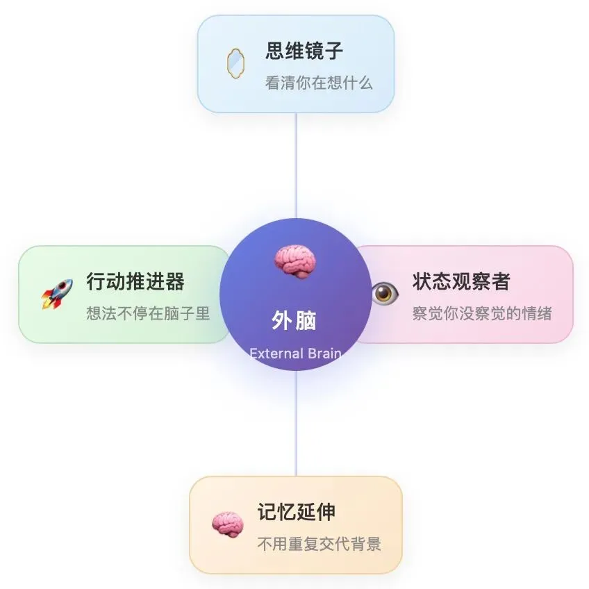 以前很多想法,想想就过去了。现在你说出一个想法,他会帮你变成具体的下一步——就像我说想做打卡提醒,当天晚上就落地了自动化。想法不再停在脑子里。
