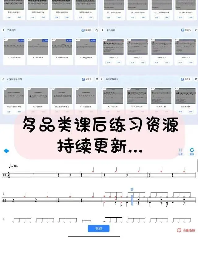 3. 海量课后资源:节奏训练、声部练习、基本功打卡…持续更新,给孩子做个性化练习方案很方便。