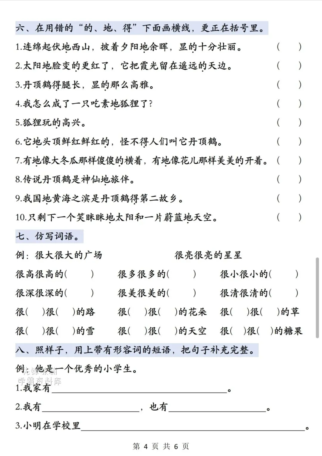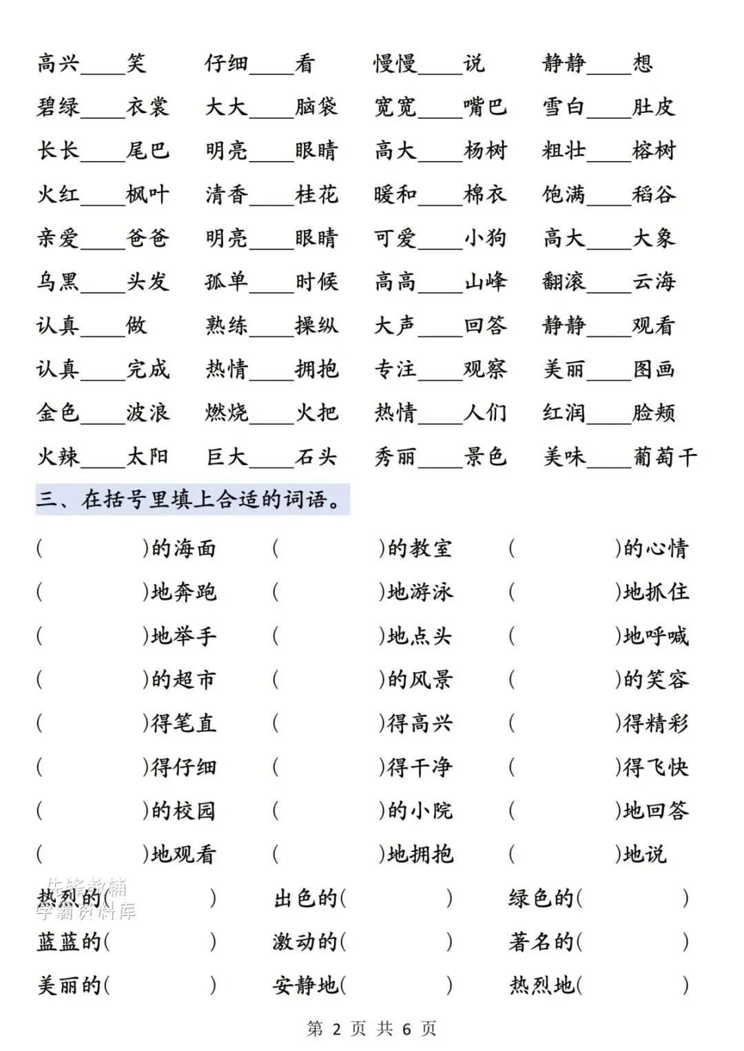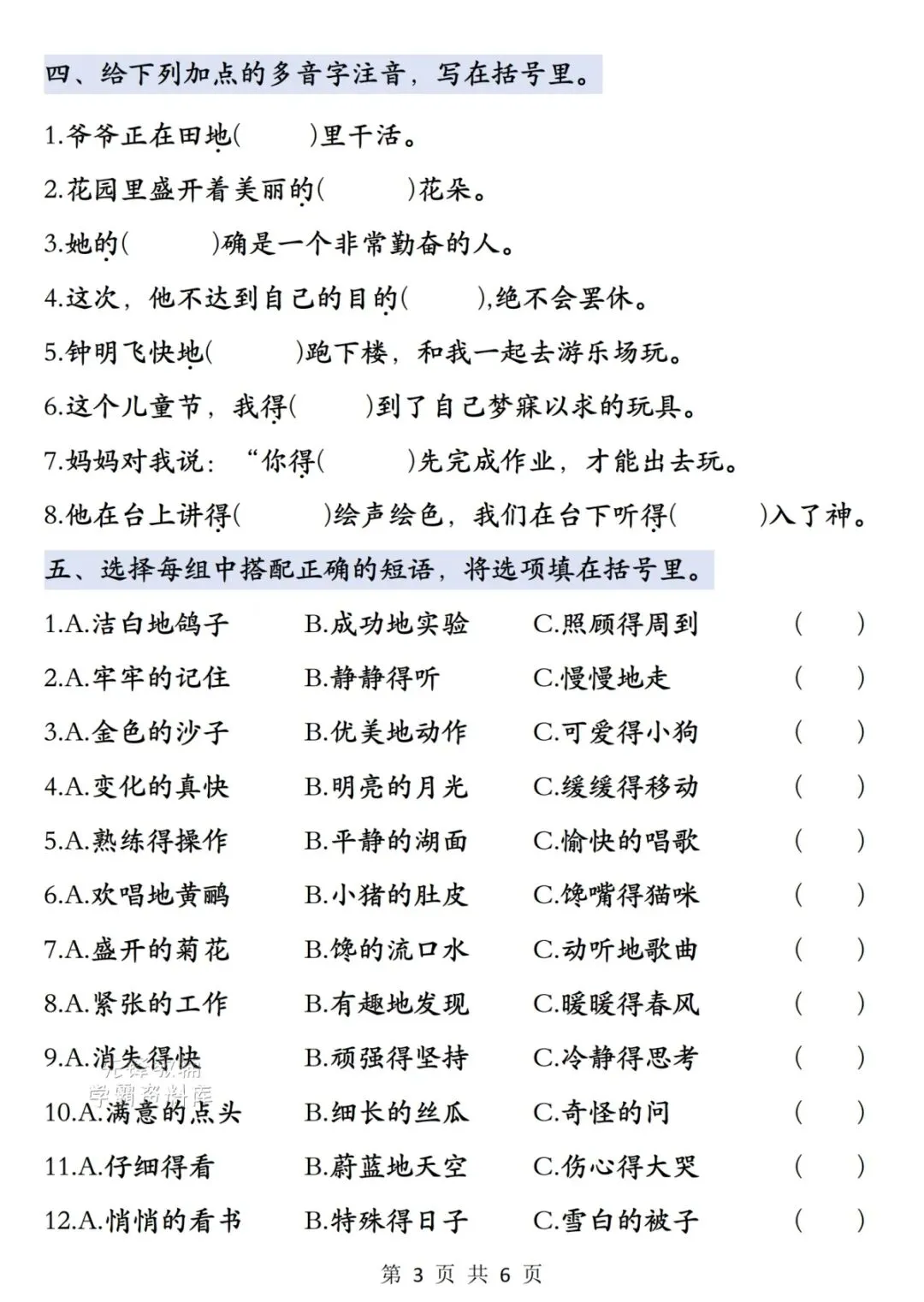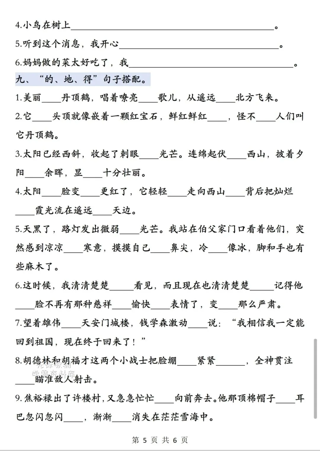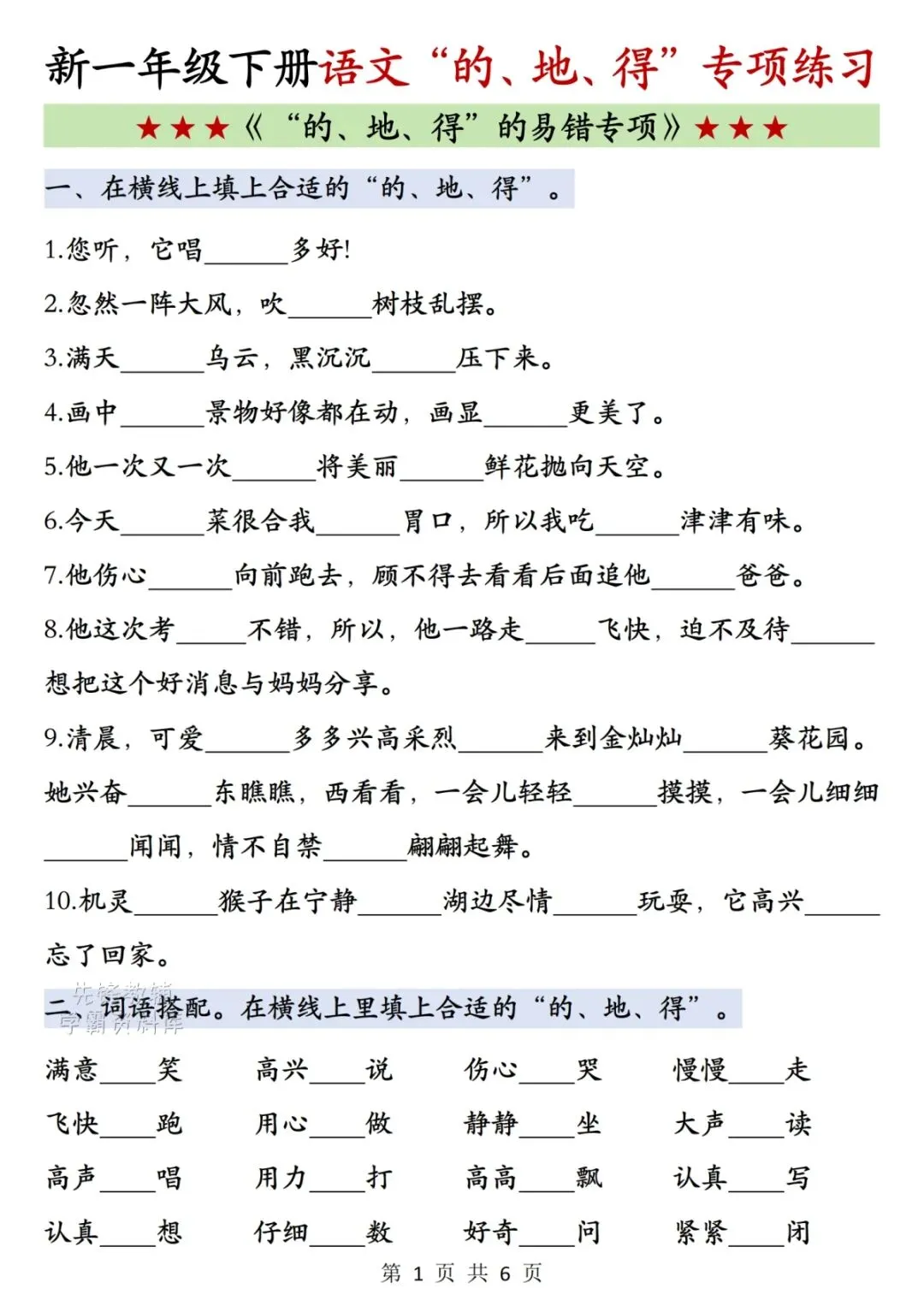 一年级下册:“的、地、得”专项练习(附电子版可打印)