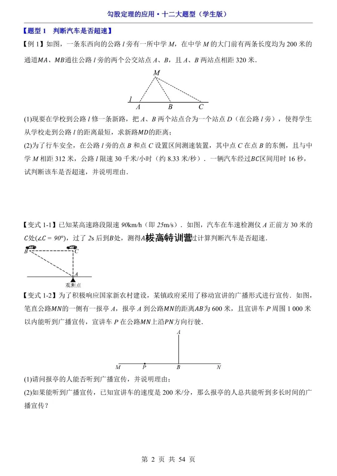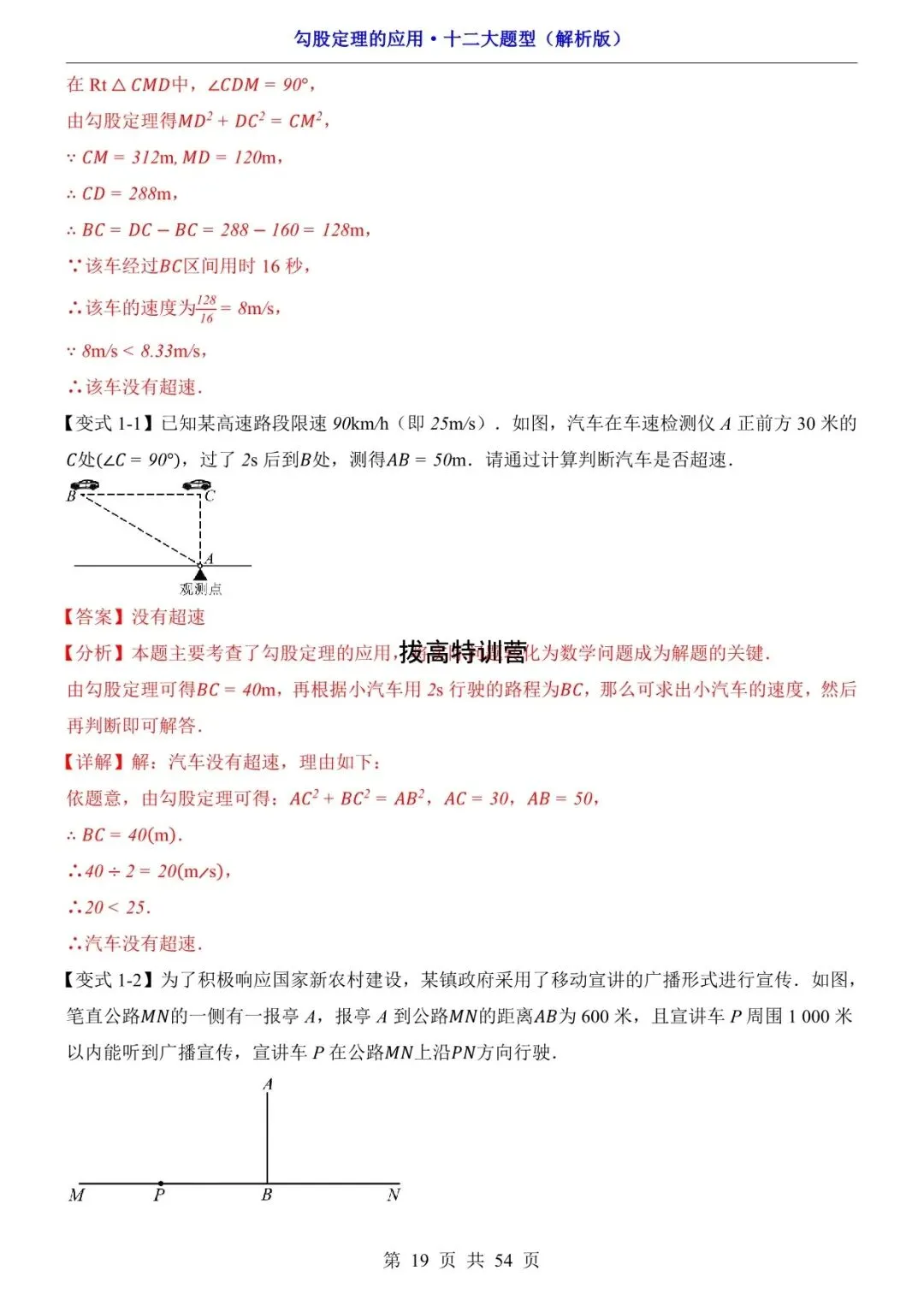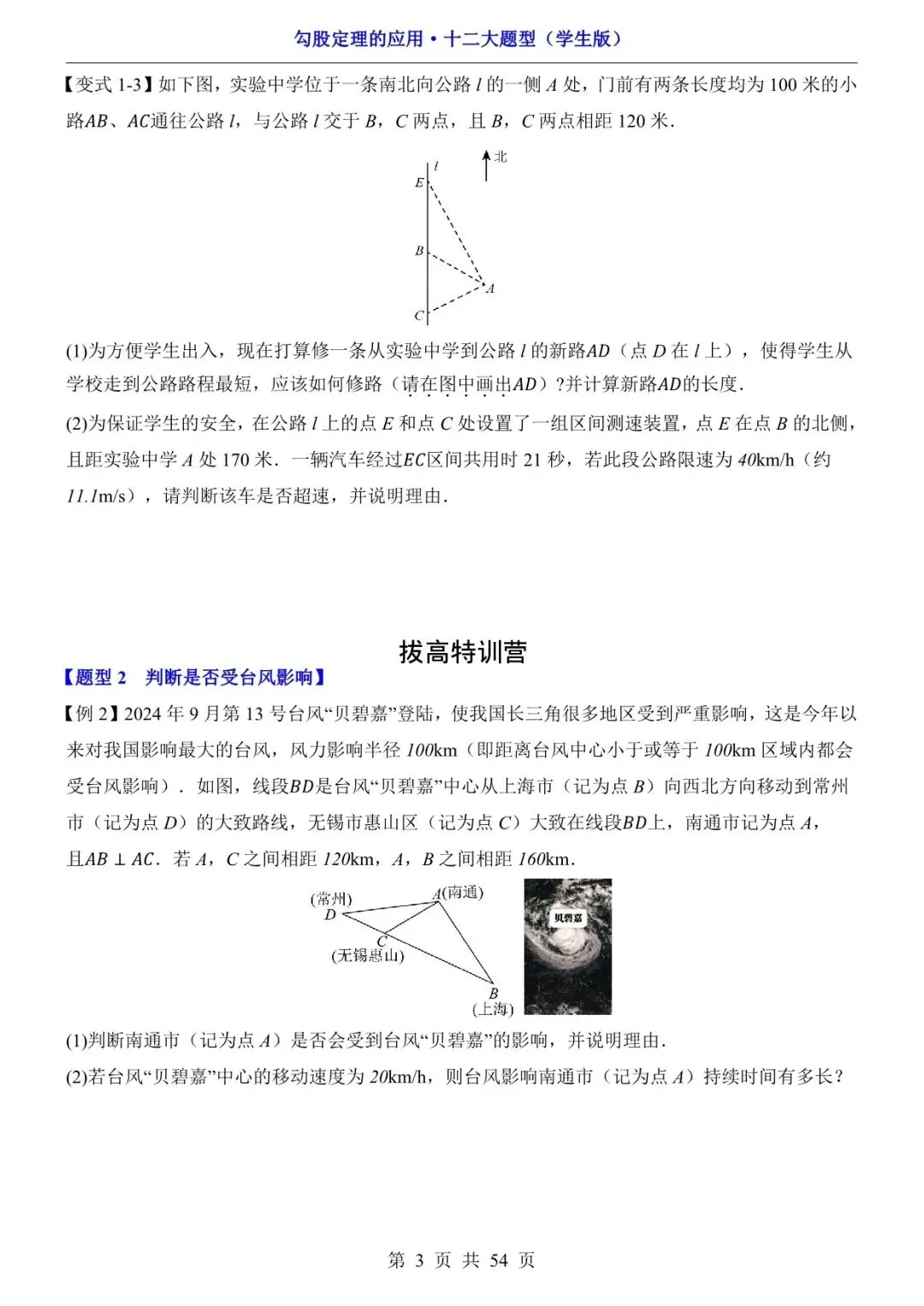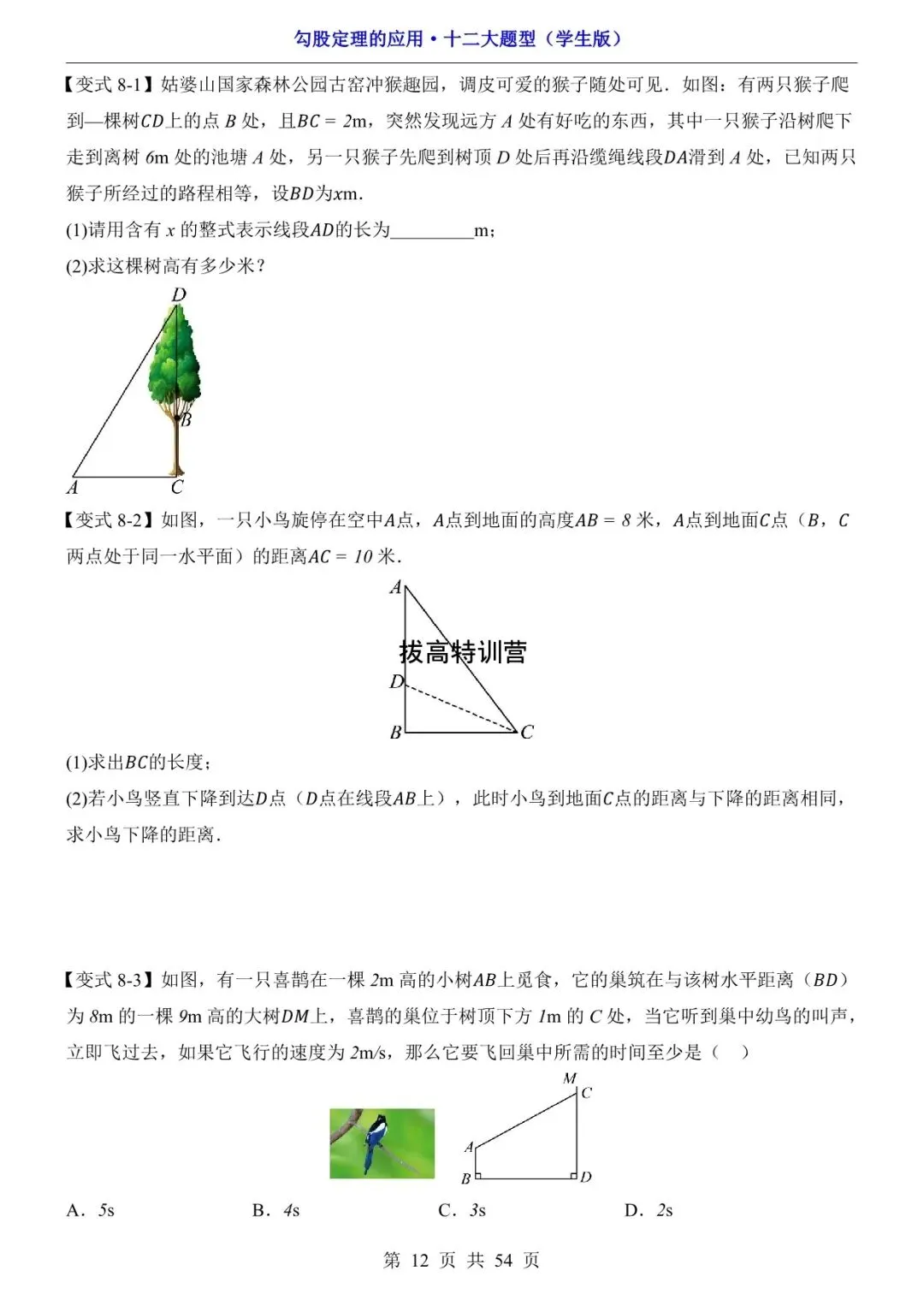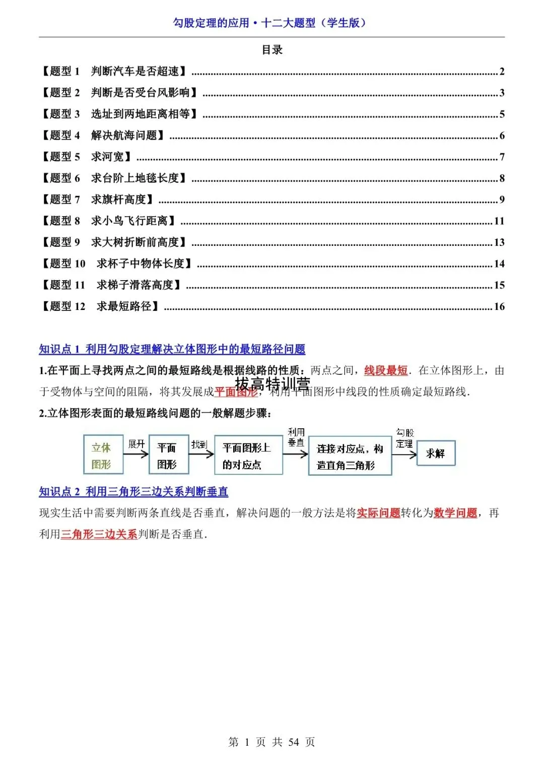 2026年八下数学《勾股定理的应用》专项训练|十二大题型合集|含答案解析,电子版可打印!
