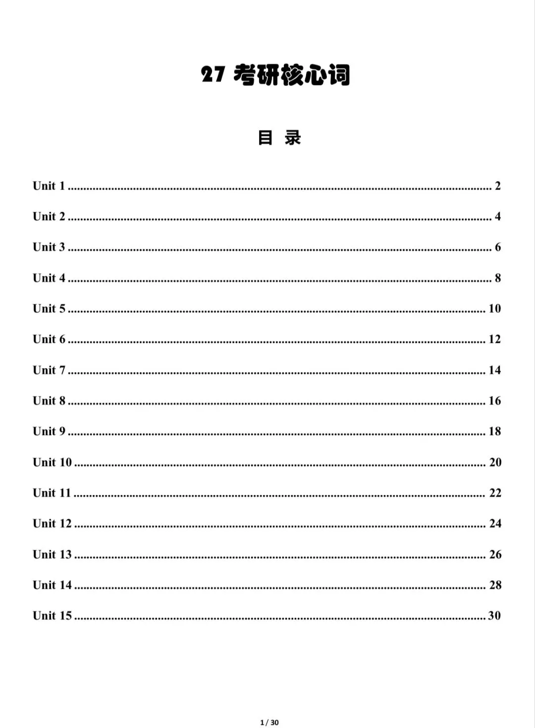 哈喽!各位准研究生们大家好!小舟今天分享的资料是27考研英语核心词总结PDF,一天一个单元,15天背完,以后还会免费分享各类考研干货,大家将公众号星标一下,就不会错过重要资料啦!!