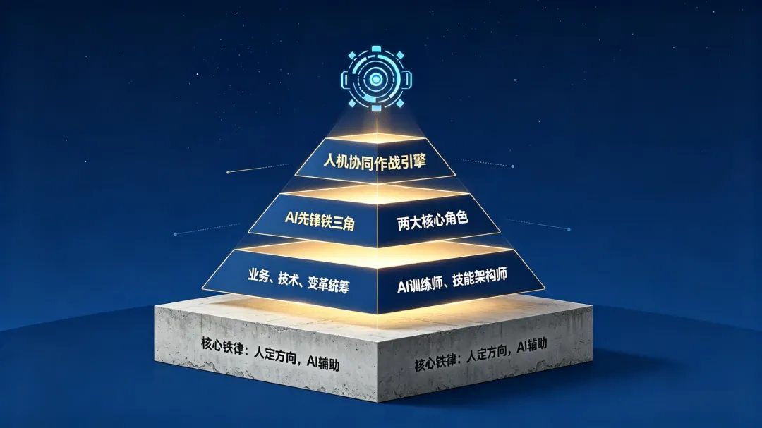 没有适配的组织和团队,再先进的AI平台也是摆设。AI转型是一场一把手必须亲自下场的硬仗,在此基础上,还要搭出一个权责清晰、目标对齐的人机协同作战体系。