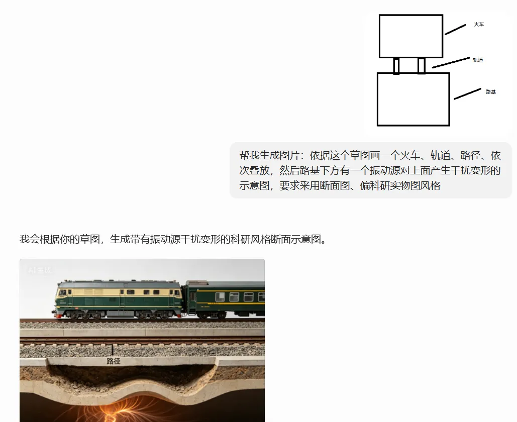 这几张图挑选,并经过微调,基本能够符合这个展示的需求,节省了不少时间。在实际操作中可以让AI生成多张图,然后我们从中挑选合适的。初始的草绘图其实起到了一个指导AI生成方向的一个作用。在草绘图中,我们还可以适当的标注一些文字。让AI能够更加清晰的知道要绘制图形的具体代表什么物体。