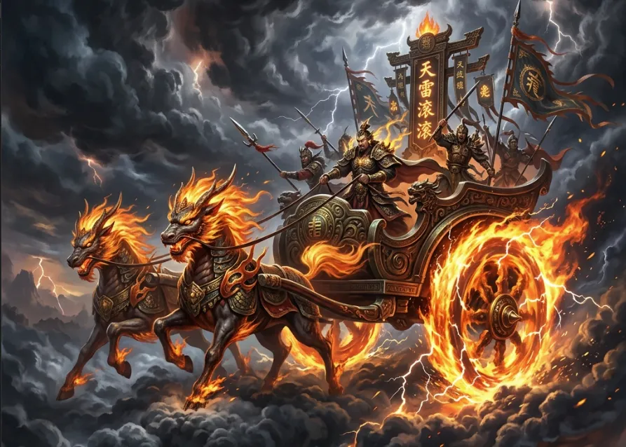 古人听见打雷,觉得就像天上有一辆巨大战车经过。所以“天雷滚滚”不是比喻,它就是这个字最原始的含义:天上的车轮在滚。