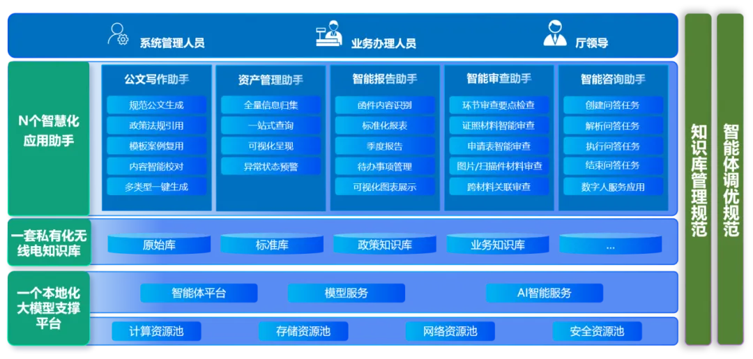 聚焦于频率台站管理、审批监督、行政执法等职能的部门,可借助该平台提升业务咨询、智能审查、知识沉淀与综合管理效能。