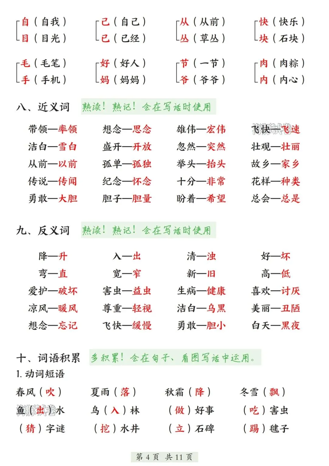 内容覆盖:生字注音、看拼音写词语、形近字、多音字、反义词近义词、量词搭配、词语分类、句子仿写、按课文内容填空、古诗与日积月累、看图写话等一年级期中必考专项。题型基础、重点突出、排版清晰、可直接打印练习,帮孩子夯实基础、规范答题、少丢分,轻松备战期中测试。